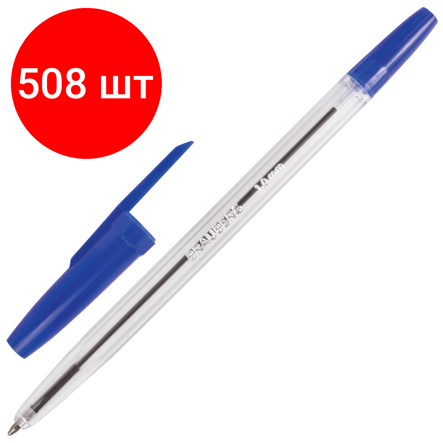Отзывы на Комплект 508 шт, Ручка шариковая BRAUBERG "Line", синяя, корпус прозрачный, узел 1 мм, линия письма 0.5 мм, 141097
