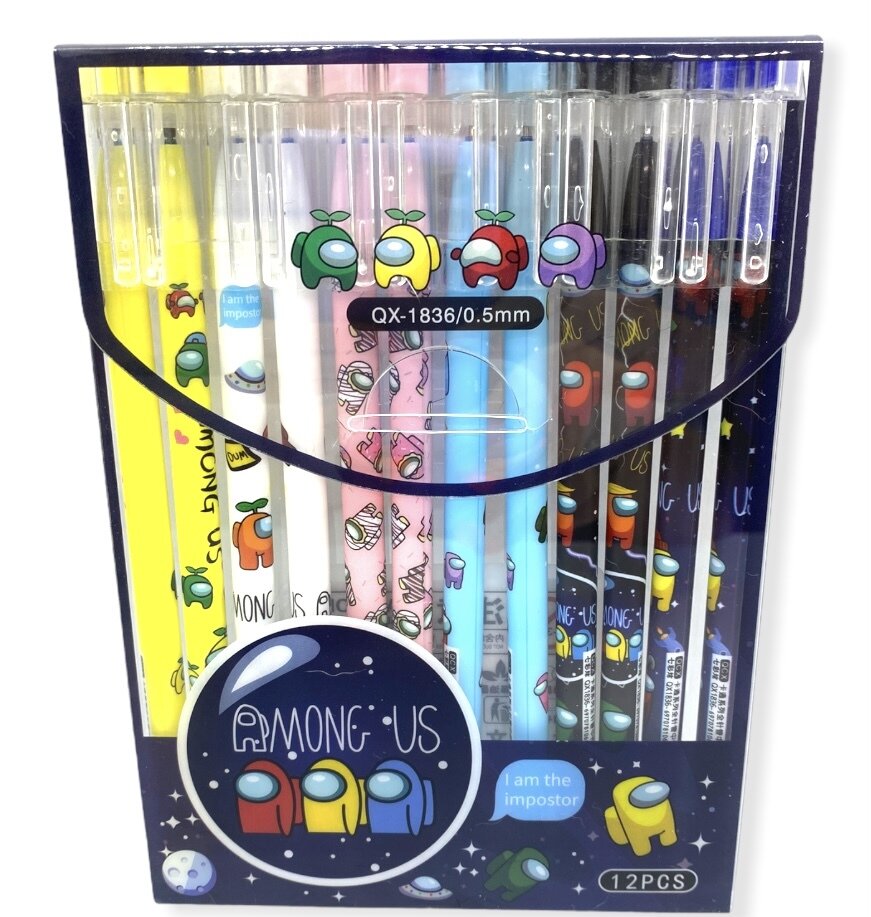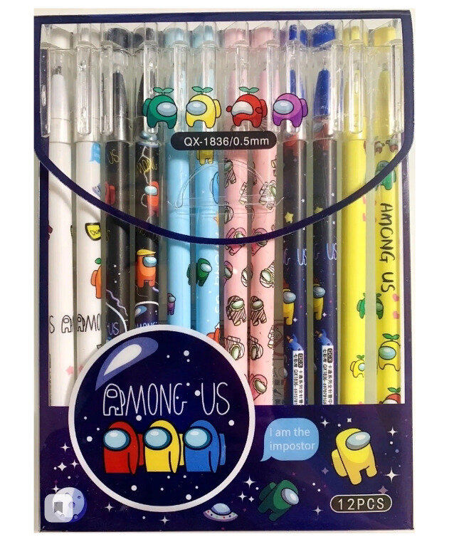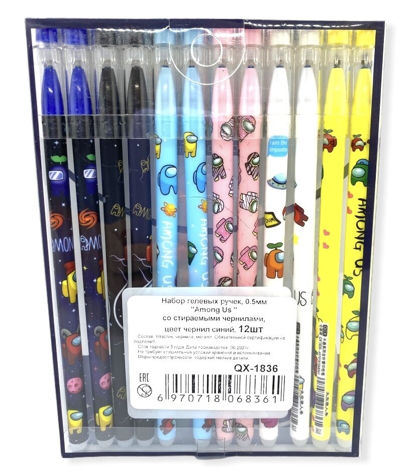 Набор ручек пиши-стирай "Among Us" 12 шт./ Ручки гелевые синие со стираемыми чернилами информация: