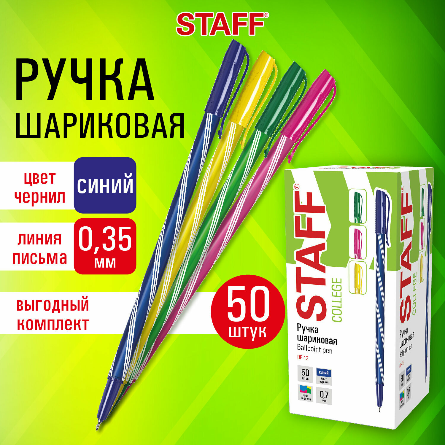 10 цен на Ручка шариковая Staff College Bp-12, синяя, Выгодный Комплект 50 штук, линия 0,35 мм, 880998