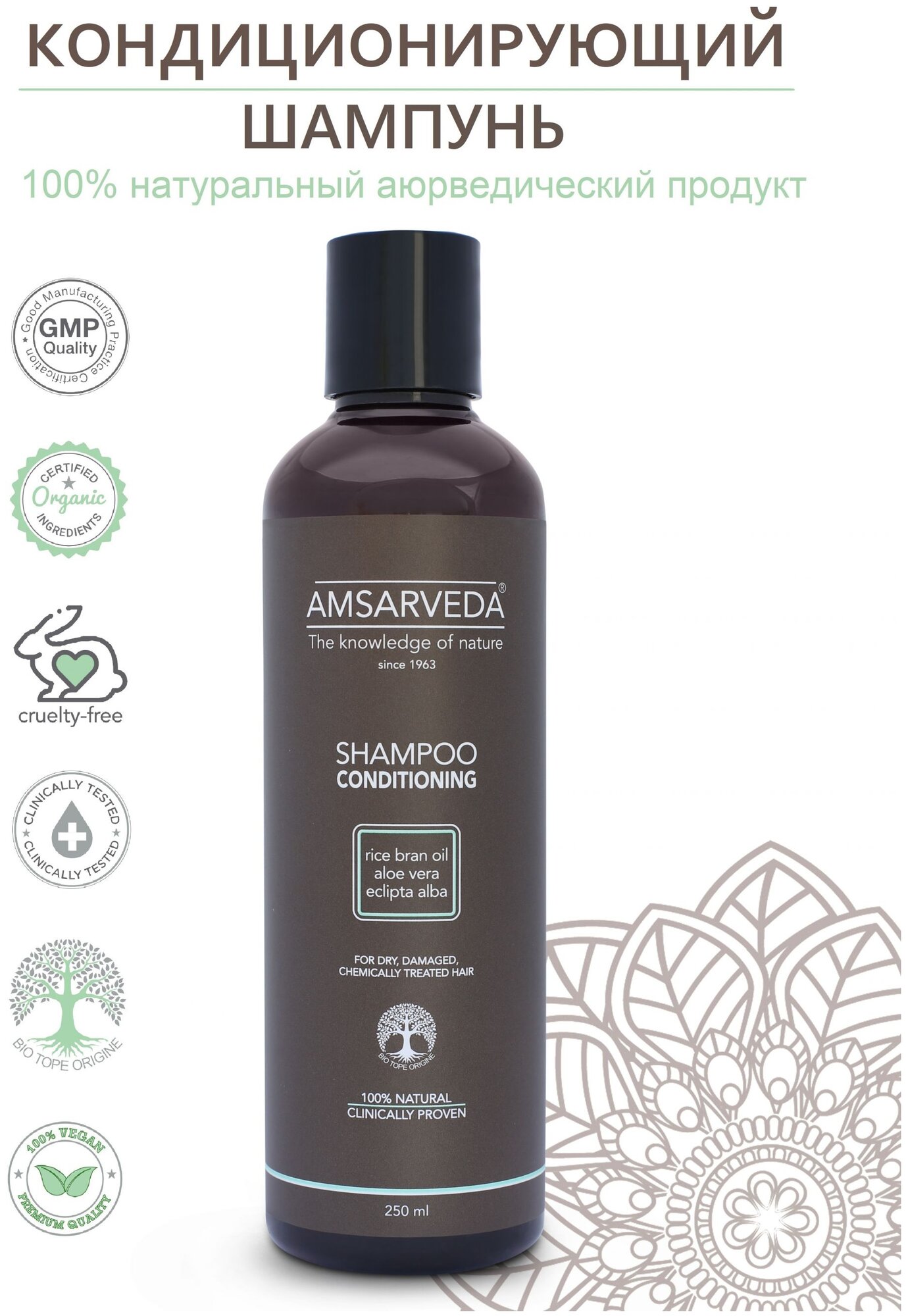 10 цен на AMSARVEDA. Кондиционирующий шампунь натуральный с алое вера без сульфатов, парабенов Shampoo Conditioning 250мл