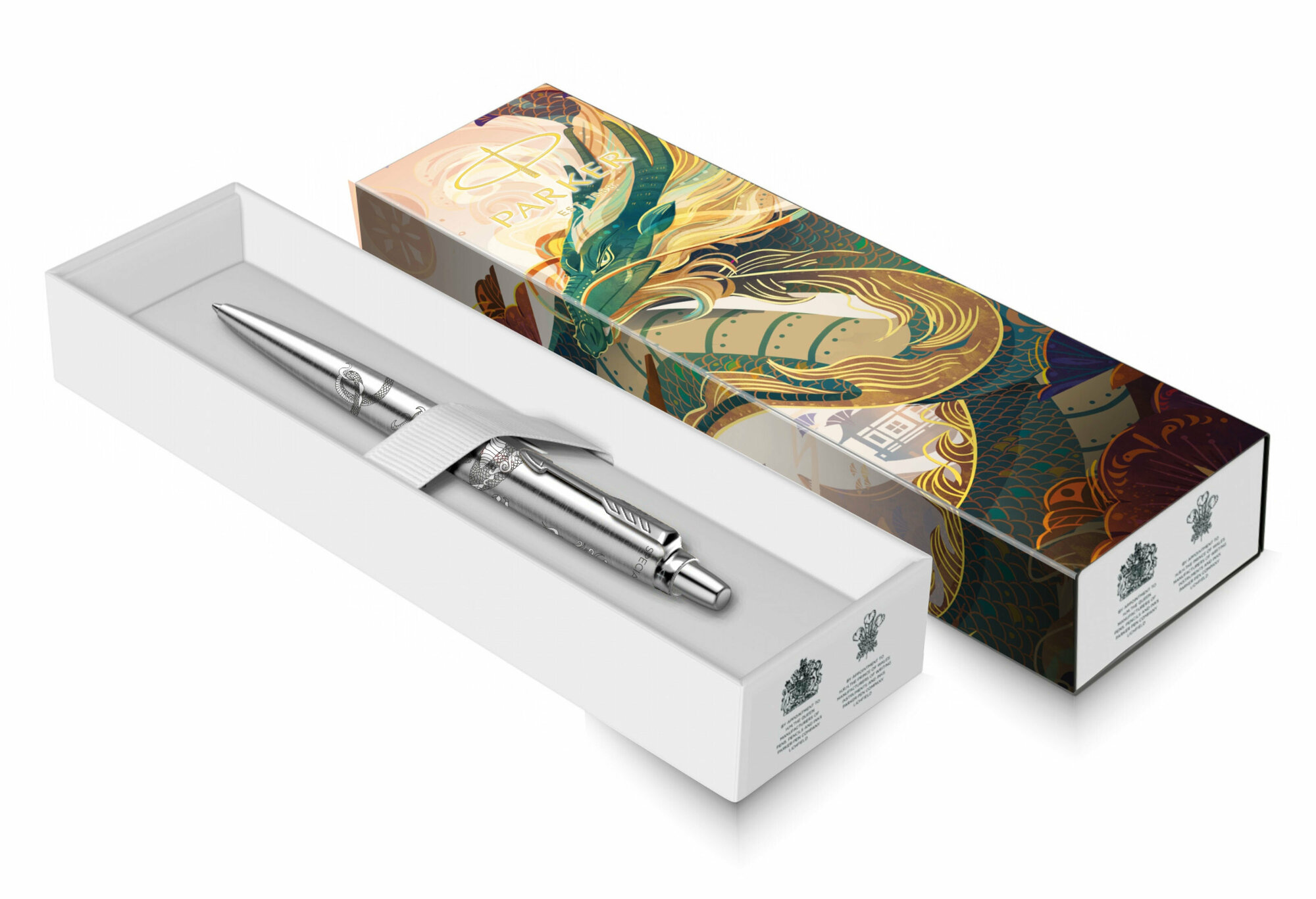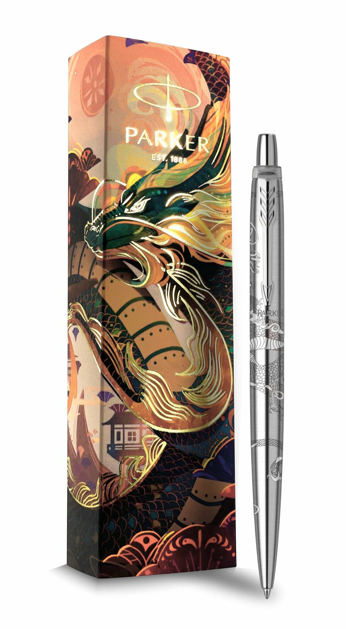 Шариковая ручка Parker Jotter Dragon Special Edition, цвет: St. Steel СT, стержень: Mblue в подарочной коробке информация: