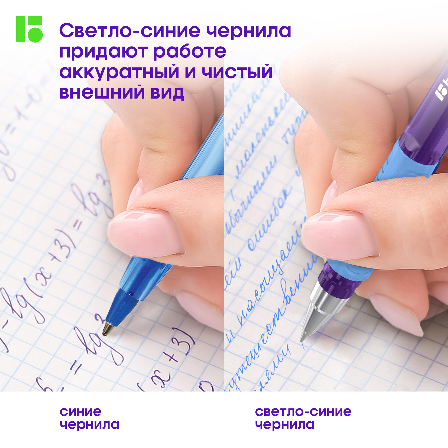 Ручки шариковые синие набор 12 штук тонкие для школы с грипом, линия письма 0,35 мм, Brauberg X-ONE, 143986