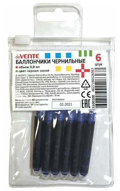 Картридж канцелярские для перьевой ручки чернила 6 шт информация: