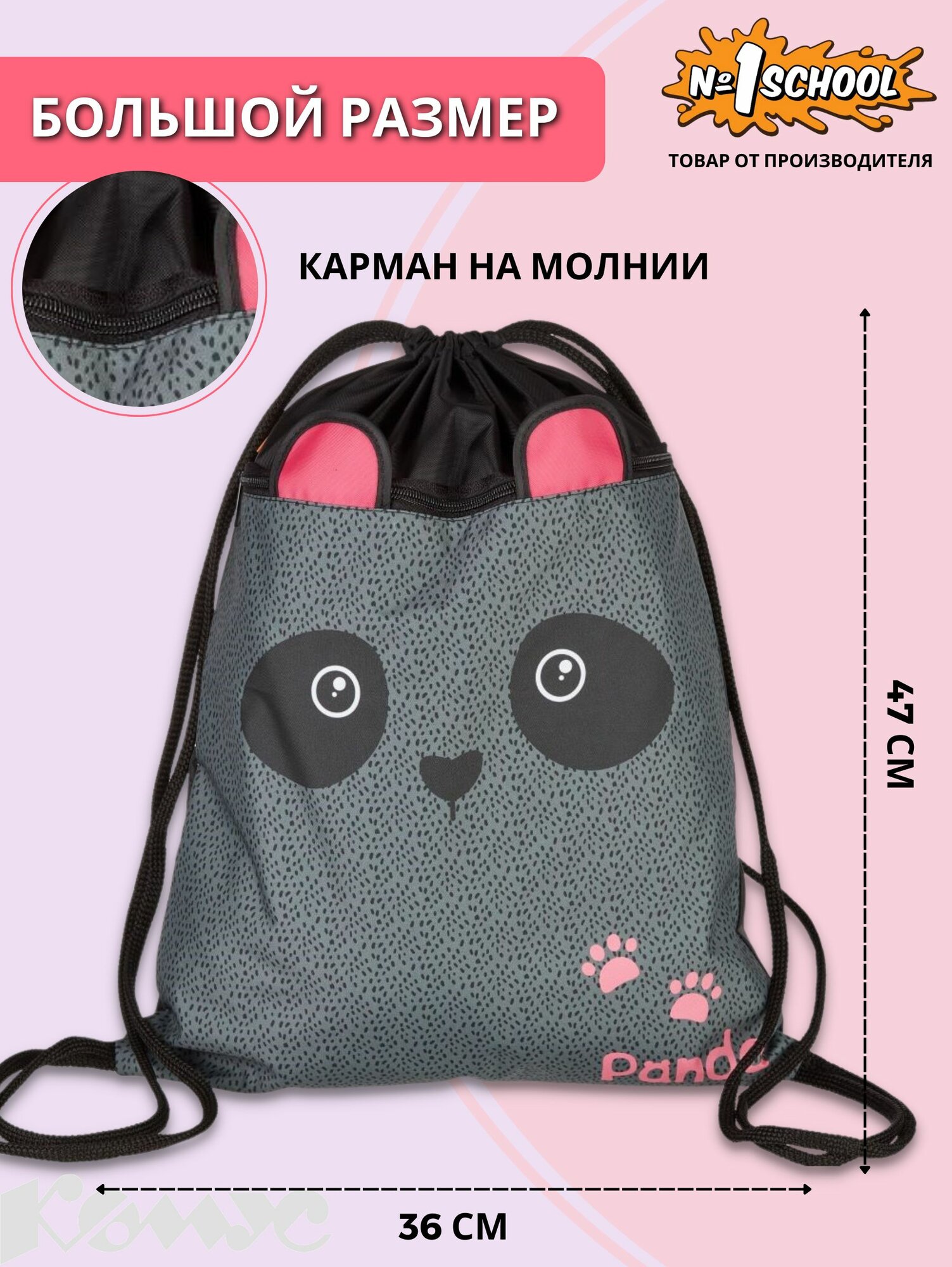 Отзывы на Мешок для сменной обуви Комус Класс Panda 360x470 мм черный с карманом