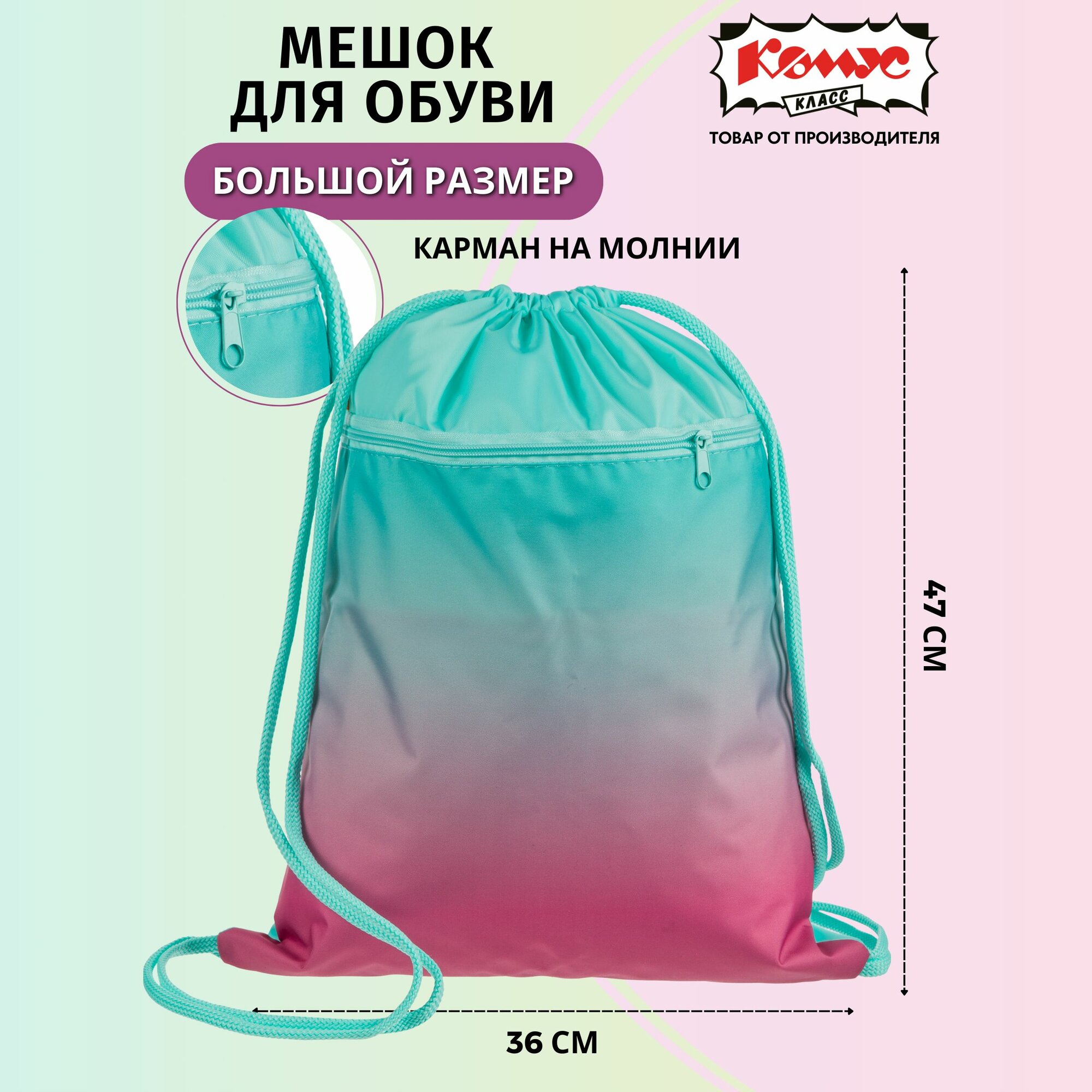 Мешок для сменной обуви Комус Класс (№1 School) Градиент 360х470 мм розовый с карманом информация: