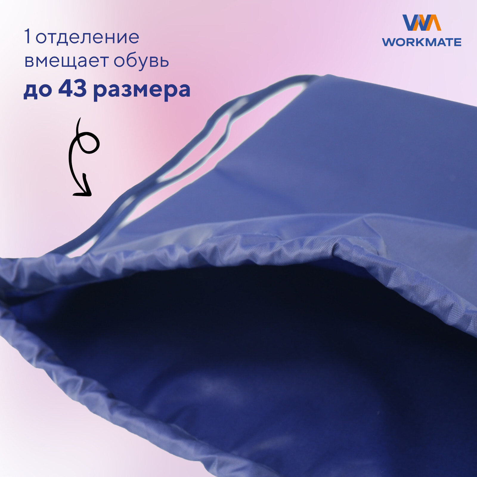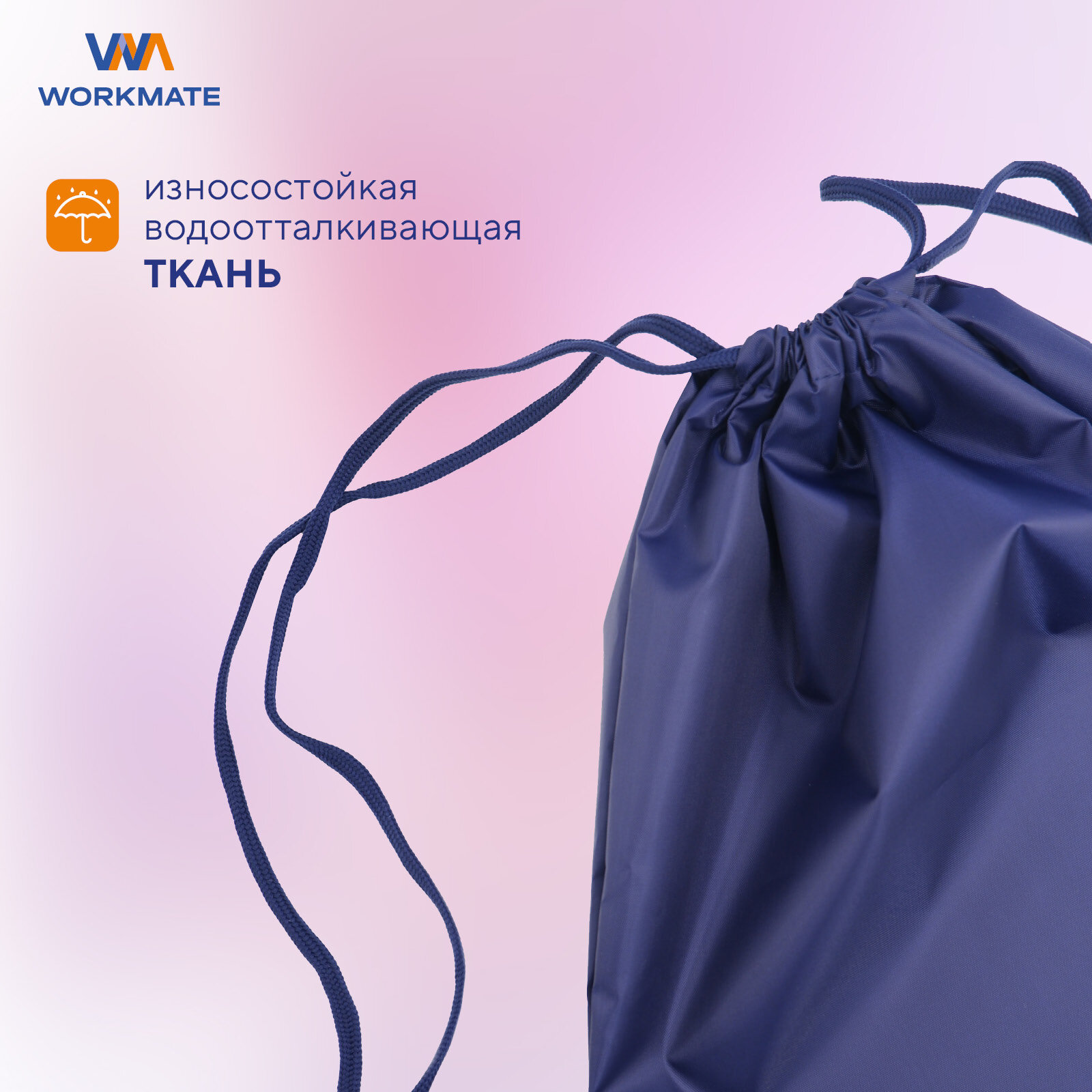 Отзывы на Мешок для сменной обуви WORKMATE 33*40 см, 1 отделение, двойной шнурок, синий