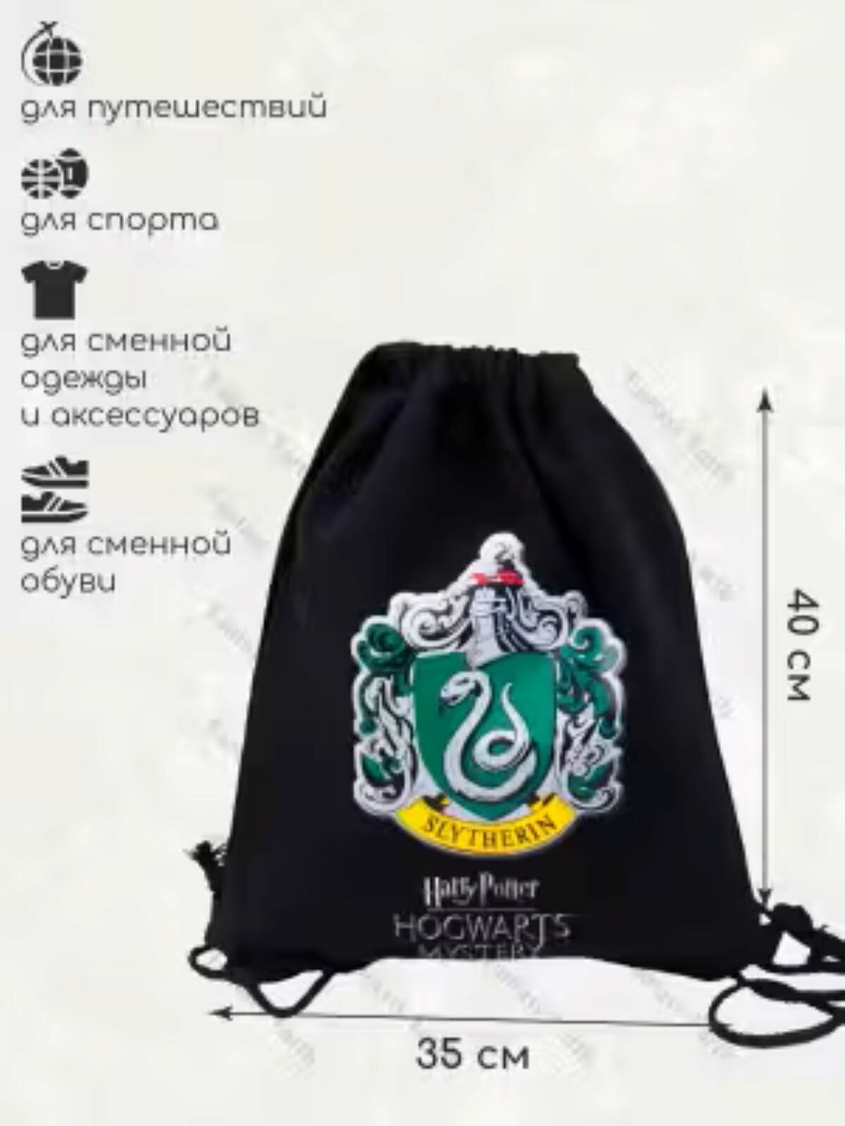 Сумка для сменки Fantasy Earth Гарри Поттер Слизерин Черный информация: