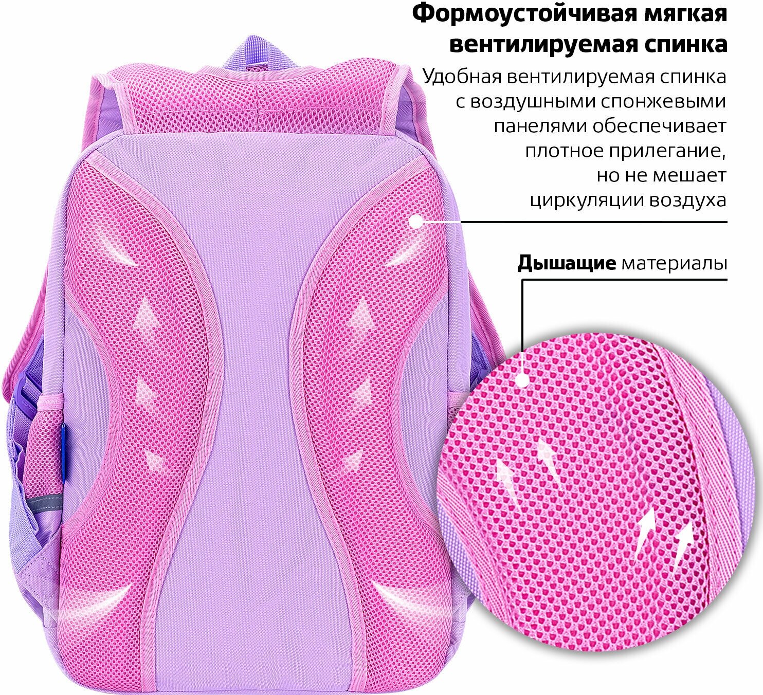 Рюкзак / ранец / портфель школьный для девочек Brauberg Star, 1 отделение, 5 карманов, Dreamy cat, сиреневый, 40x29x13 см, 271424 информация:
