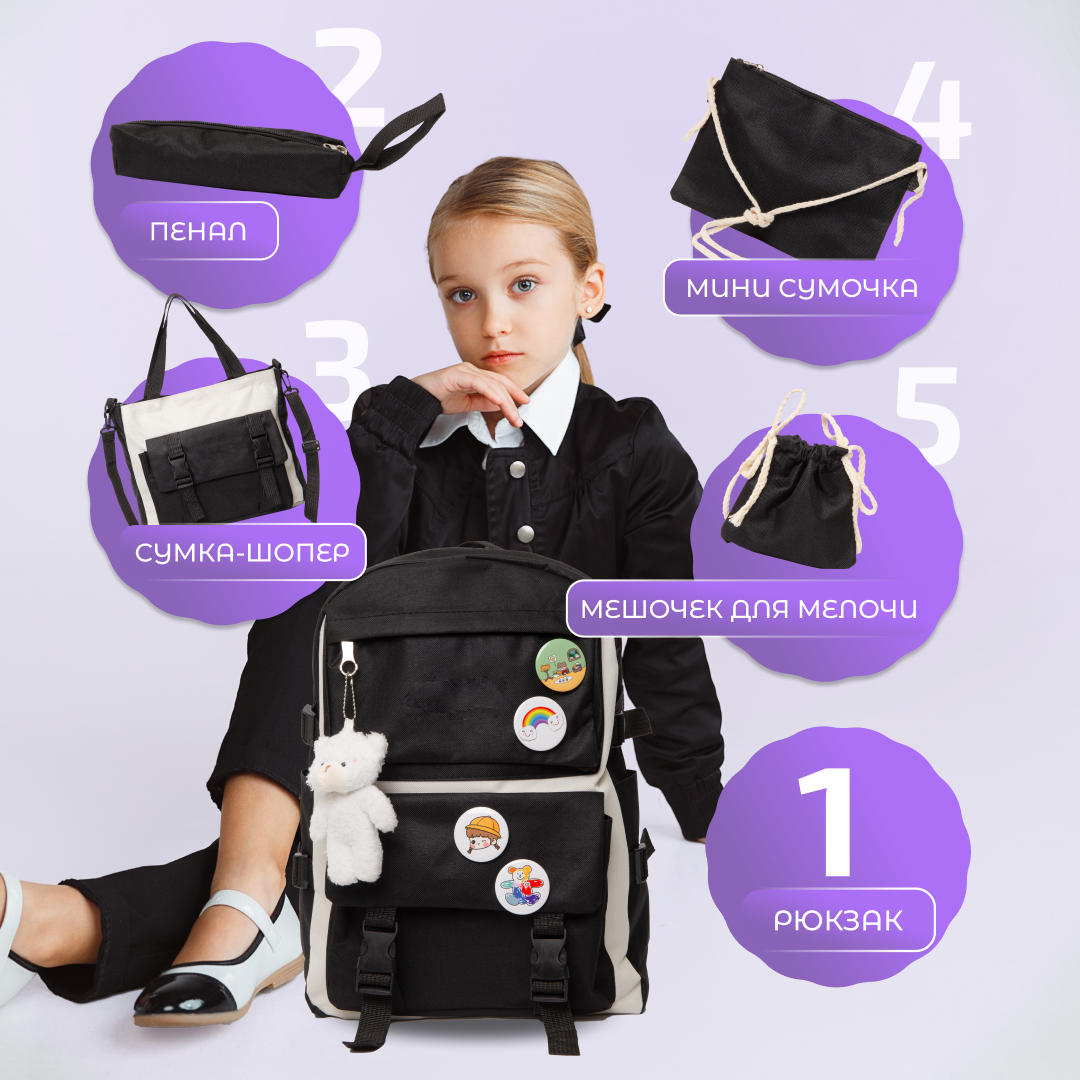 Стильный рюкзак для школы, выгодный комплект 5 в 1: рюкзак, шопер, маленькая сумка, мешочек и пенал; школьный портфель