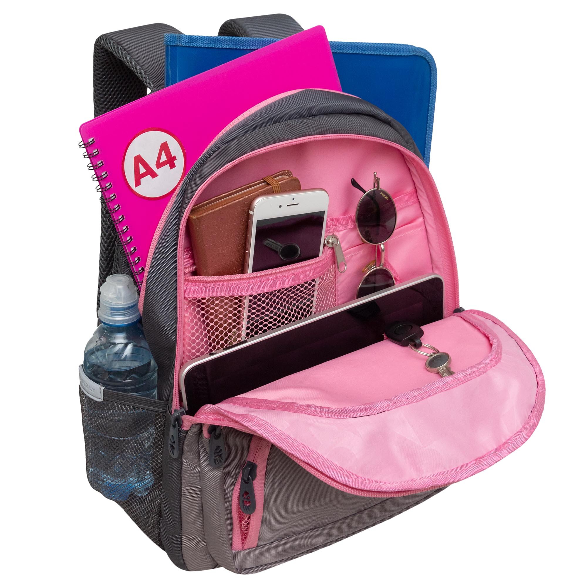 Рюкзак молодежный GRIZZLY с тремя отделениями, укрепленной спинкой, для девочки, женский RG-362-1/1 информация:
