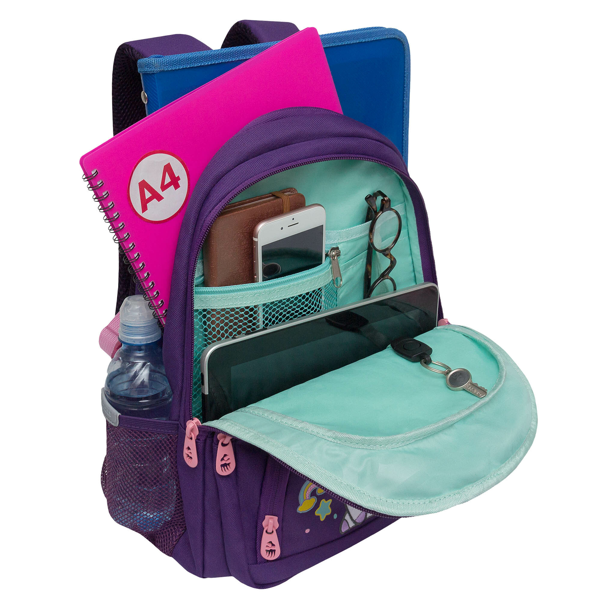 Рюкзак школьный GRIZZLY с карманом для ноутбука 13", двумя отделениями, анатомической спинкой, для девочки RG-466-6/1