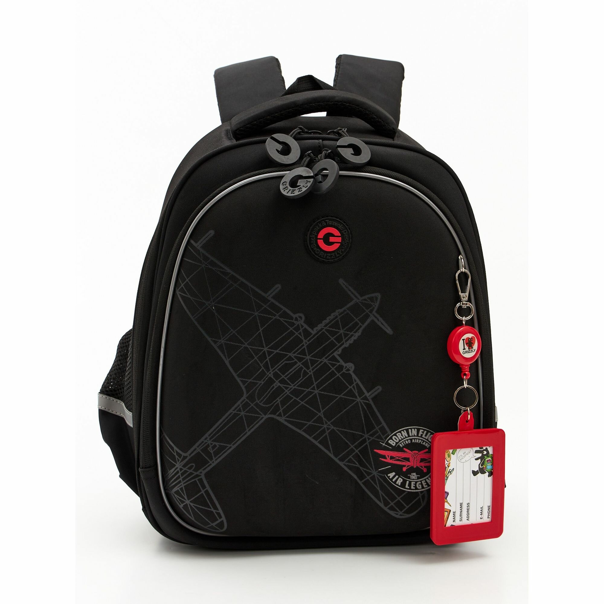 Ранец GRIZZLY анатомическая спинка, с бейджем, для мальчиков, RACER, 36х28х20 см, RAz-487-12/1, 272804 6 471 ₽