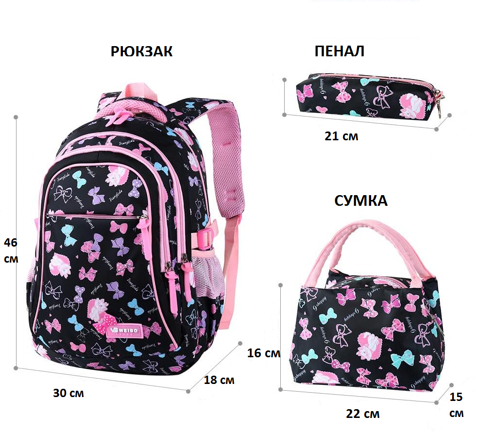 Отзывы на Школьный рюкзак 3 в 1 «Бантики» для девочек младших и старших классов с мягкой спинкой черный
