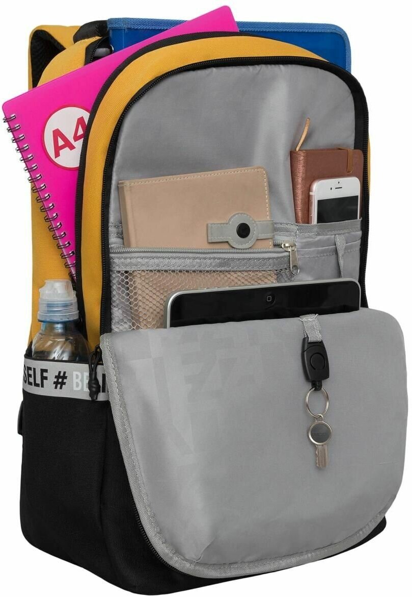 Школьный рюкзак GRIZZLY RU-337-2 черный-желтый, 29х43х15