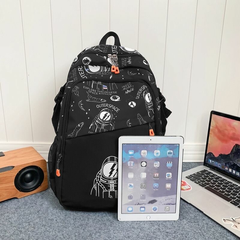 10 цен на Школьный рюкзак черный с космонавтом для начальных, старших классов / рюкзак мужской , женский