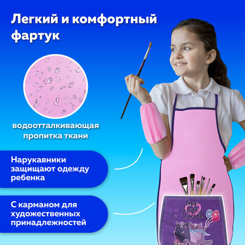 Накидка фартук с нарукавниками для труда пифагор, 1 карман, 46х54 см, "Cat friends", 272458