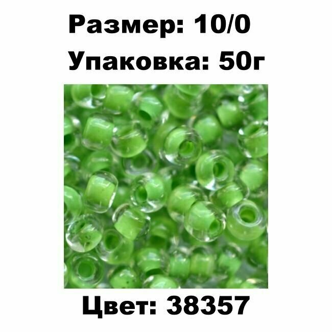 Бисер чешский PRECIOSA круглый 10/0 38357 прозрачный, зеленая линия внутри, 1 сорт, 50г информация: