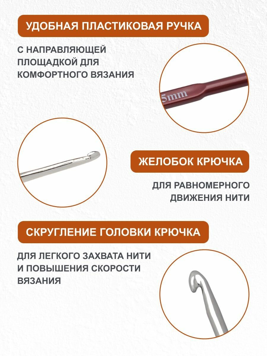 Крючок для вязания, диаметр 6 мм с резиновой ручкой с выемкой для пальца, 16 см, Hobby&Pro