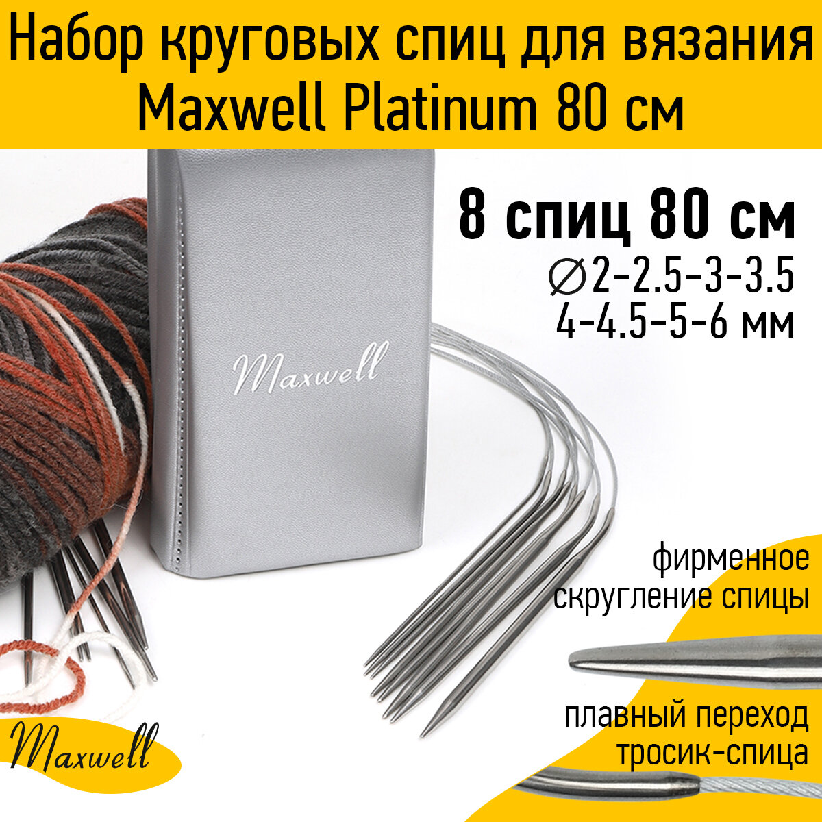 Набор круговых спиц для вязания Maxwell Platinum 80 см информация: