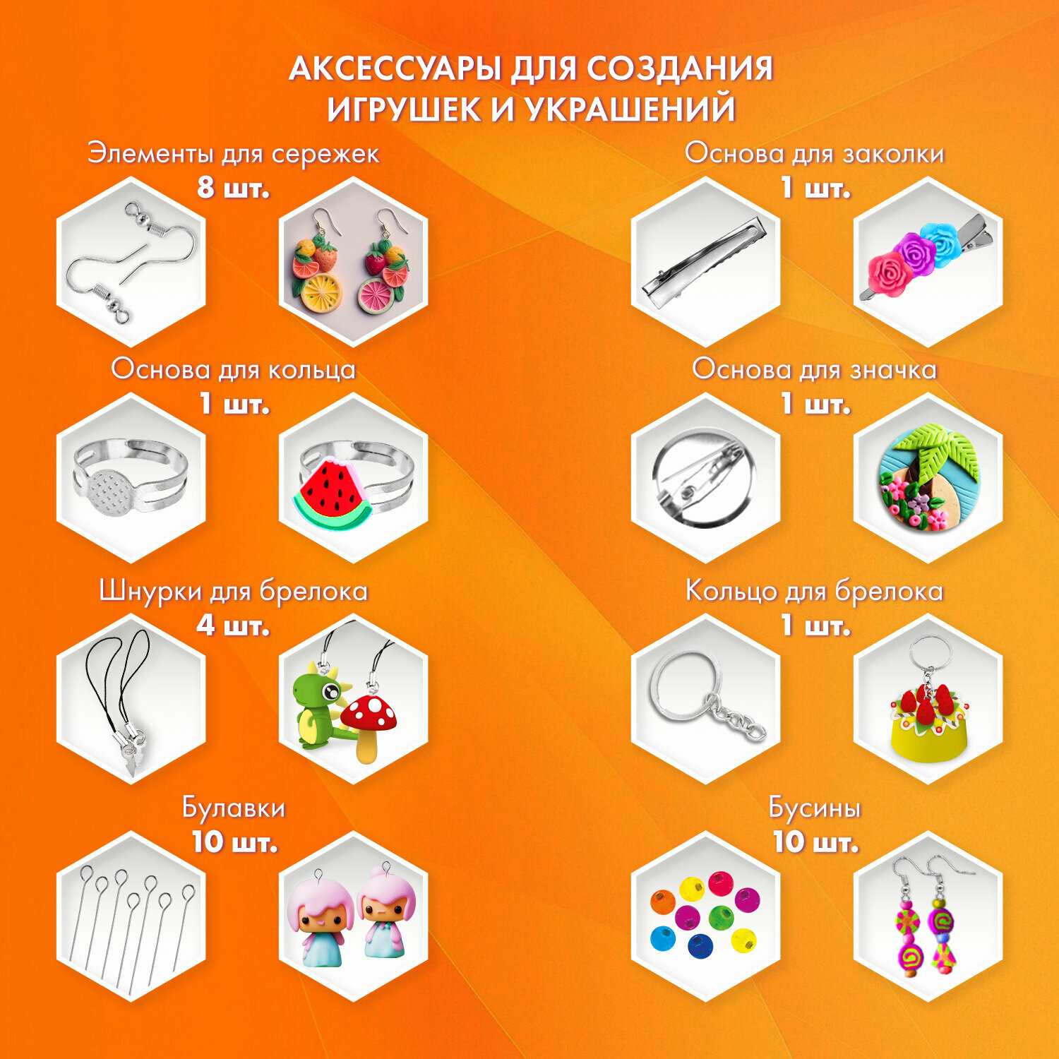 10 цен на Глина полимерная запекаемая, набор для лепки, творчества и рукоделия, Набор 42 цвета по 20 г, с аксессуарами