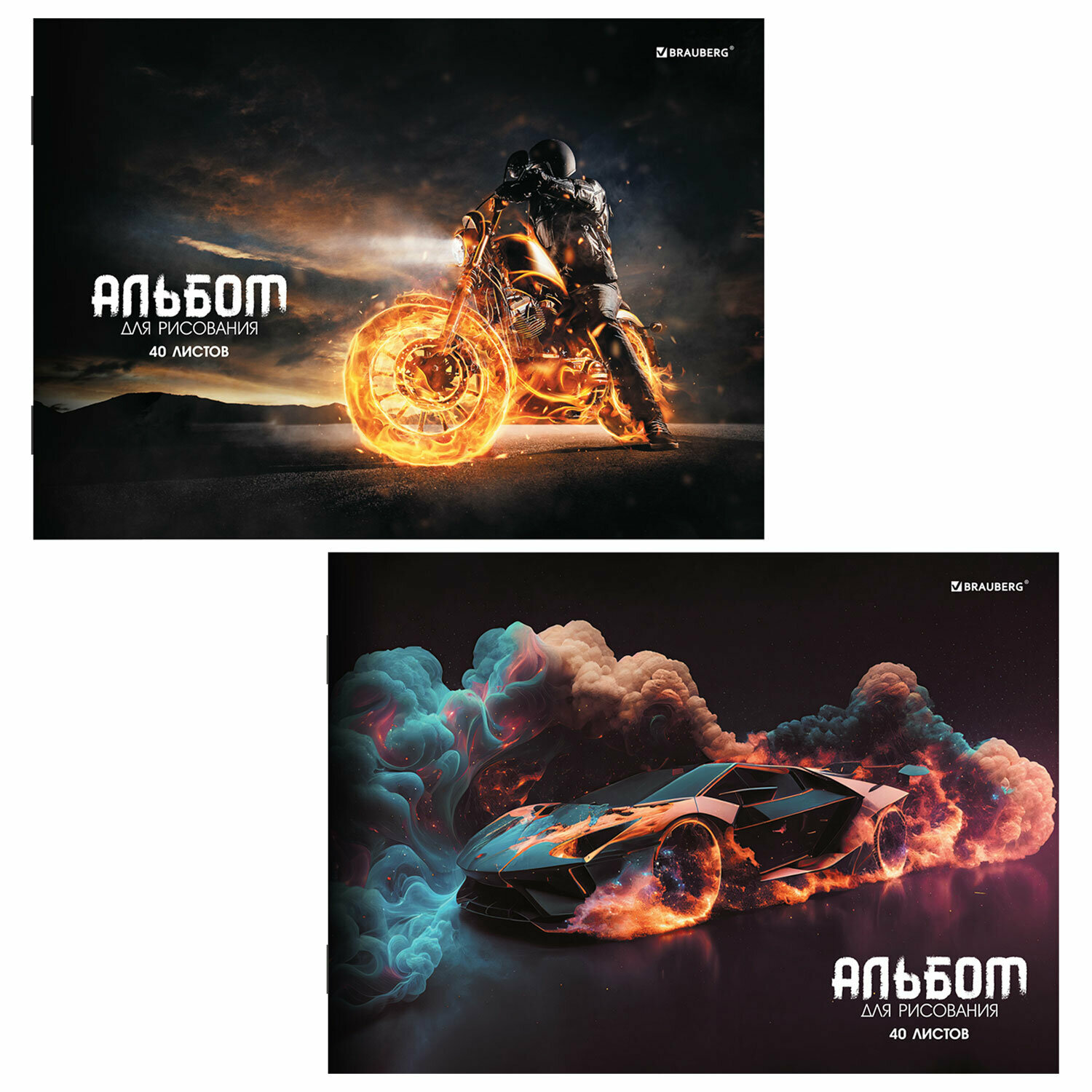 Альбом для рисования 40 листов А4, комплект 2 штуки, скоба, обложка картон, Brauberg, 205х290 мм, В мире моторов, 106736 информация:
