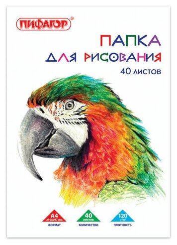 Отзывы на Комплект 21 шт, Папка для рисования, А4, 40 л., 120 г/м2, пифагор, 210х297 мм, "Попугай", 129222