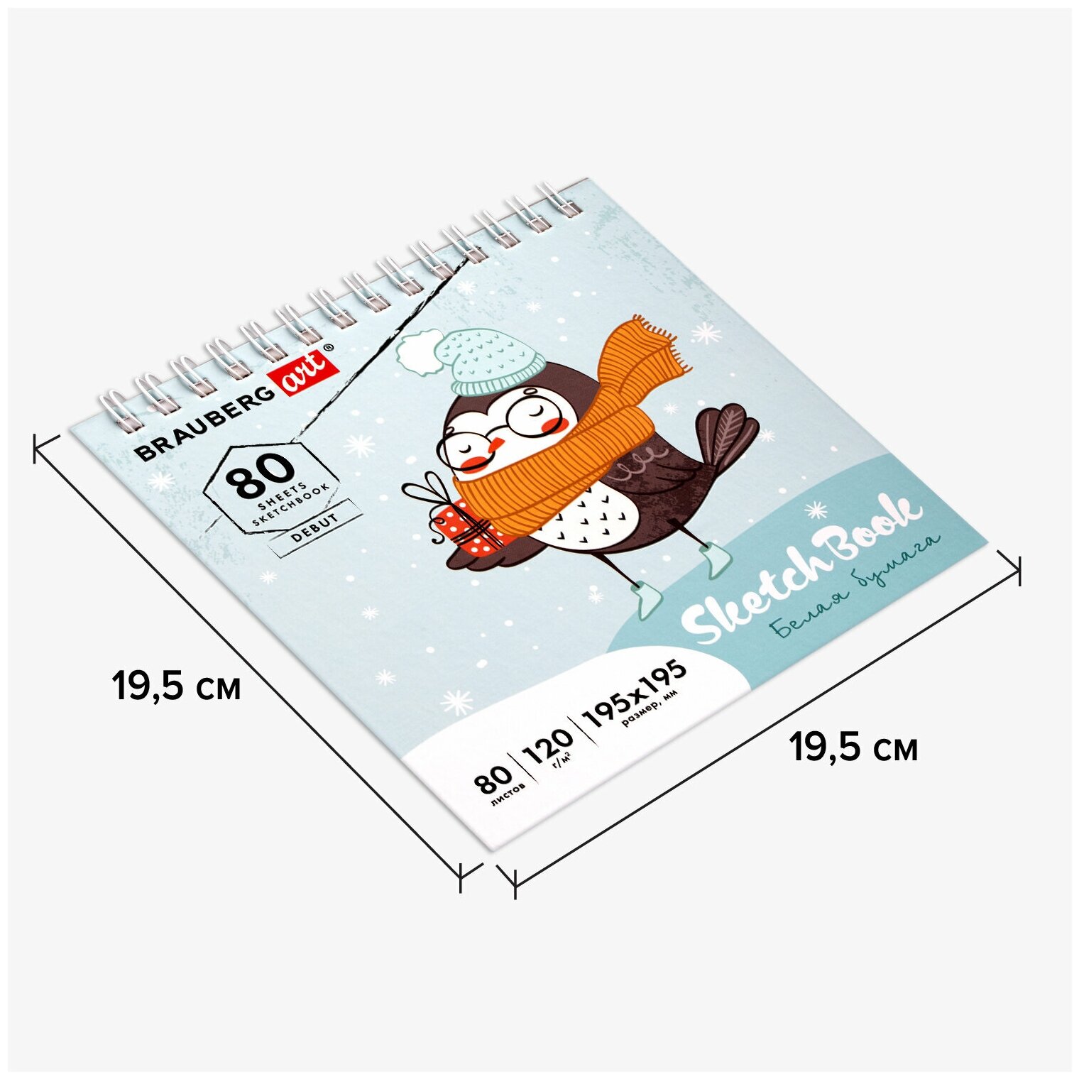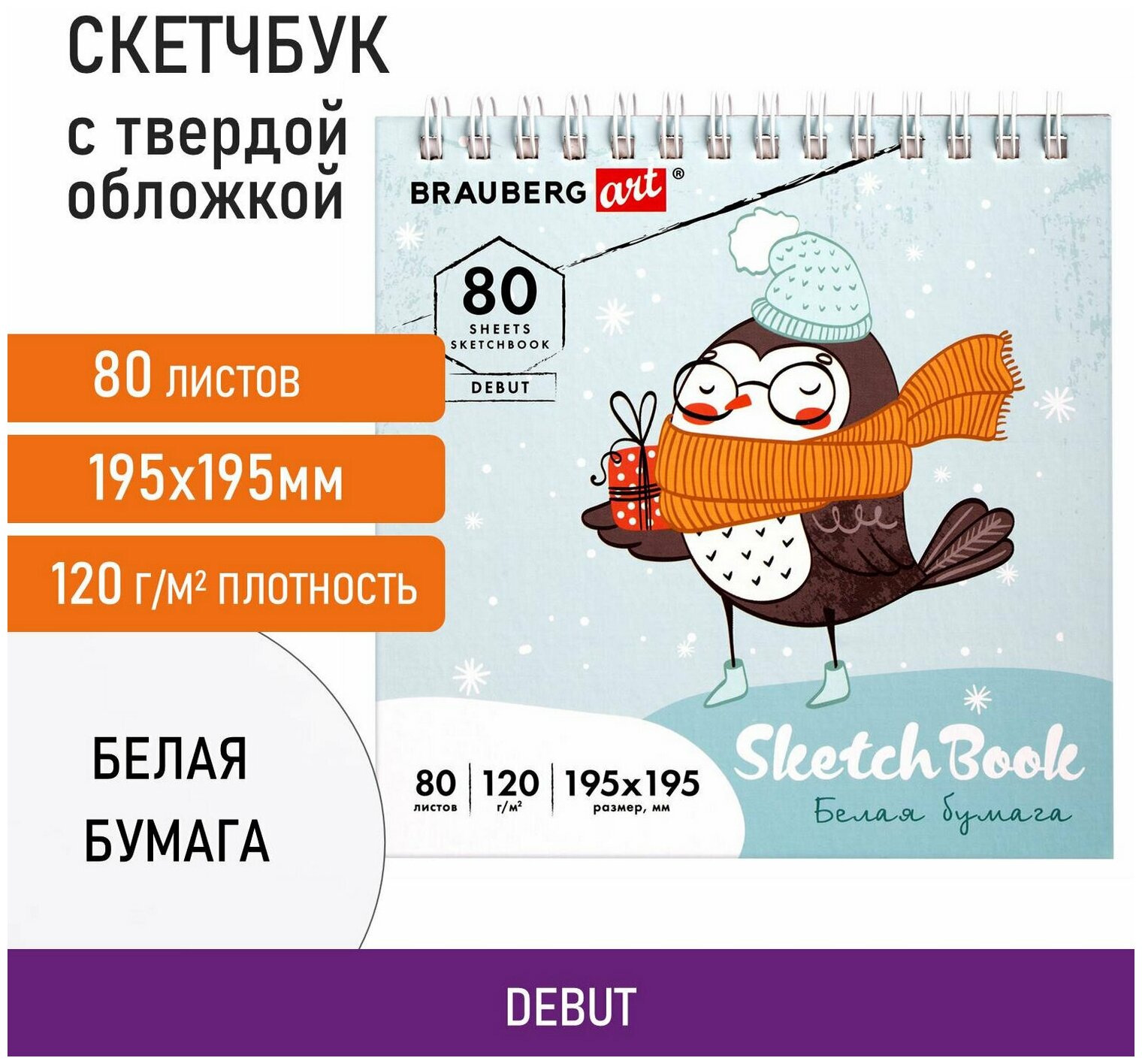 Блокнот-Скетчбук с белыми страницами для рисования эскизов 120 г/м2 195х195 мм, 80 л., гребень, твердая обложка, Brauberg Art Debut информация: