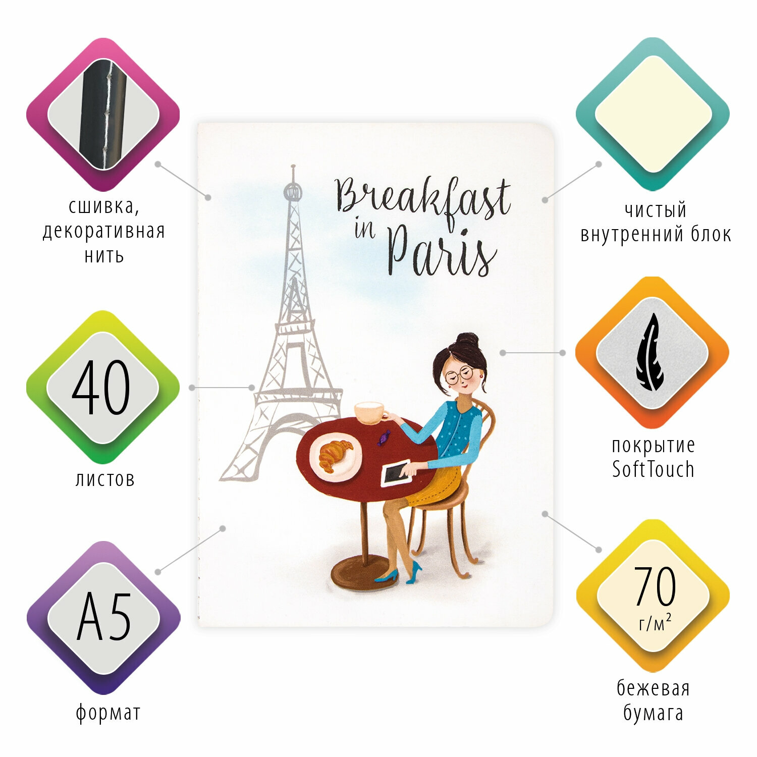 Отзывы на Тетрадь-скетчбук 40 л. обложка SoftTouch, бежевая бумага 70 г/м2, сшивка, А5 (147х210 мм), CHARM, BRAUBERG, 403804