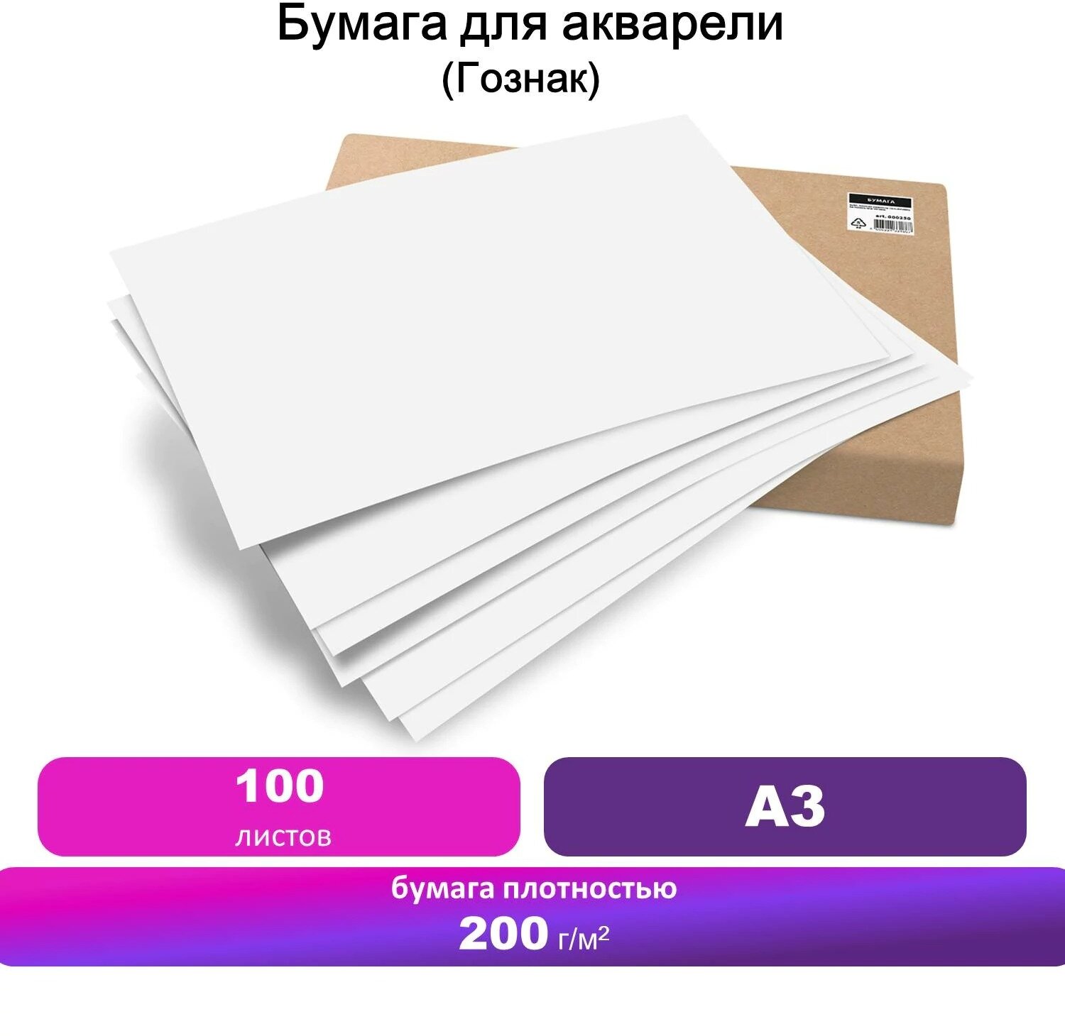 10 цен на Бумага для акварели художественная для рисования А3, 297x420 мм, Комплект 100 листов, 200 г/м2, Brauberg Art, 880258
