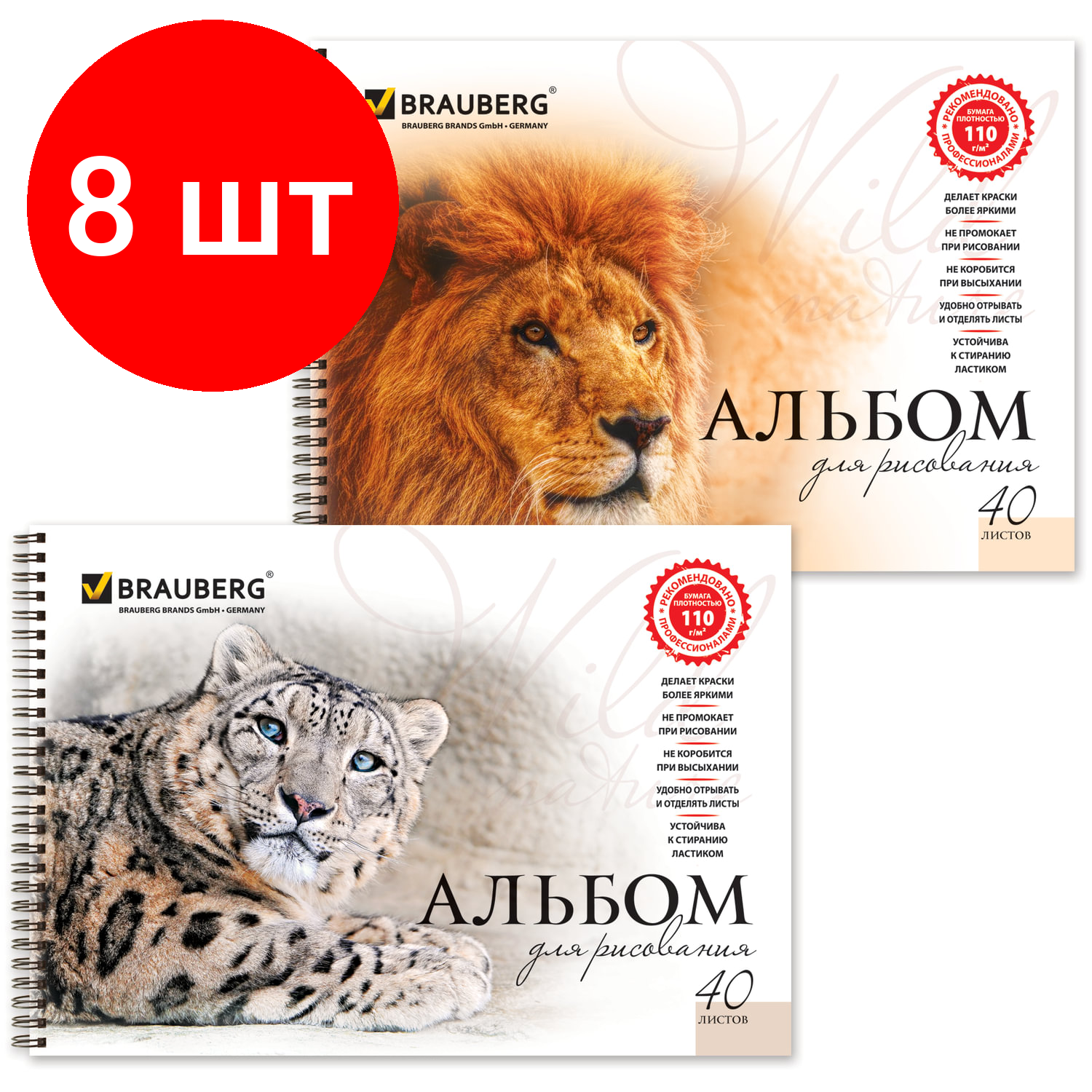 Отзывы на Комплект 8 шт, Альбом для рисования, А4, 40 листов, гребень, обложка картон, BRAUBERG, 205х290 мм, "Благородные кошки" (2 вида), 102831