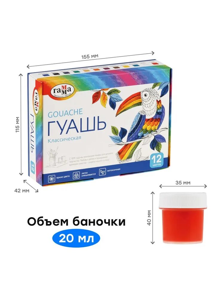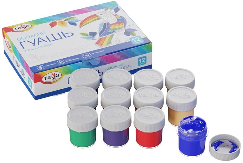 Гуашь 12 цветов "Гамма" "Классическая", 20 мл