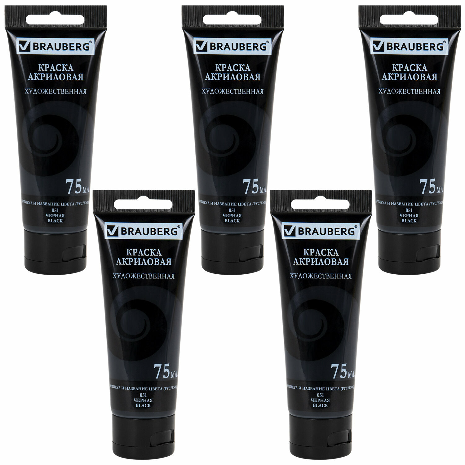 Акриловые краски художественные черные матовые акрил набор 5 штук для рисования по холсту, дереву по 75 мл в тюбиках, Brauberg Art Debut, 192417 информация: