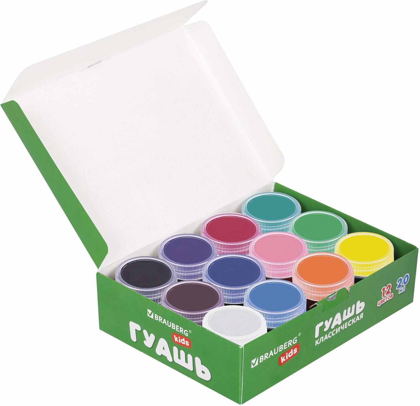 Гуашь (краска) для рисования школьная Brauberg Kids New, 12 цветов по 20 мл, 192369 информация:
