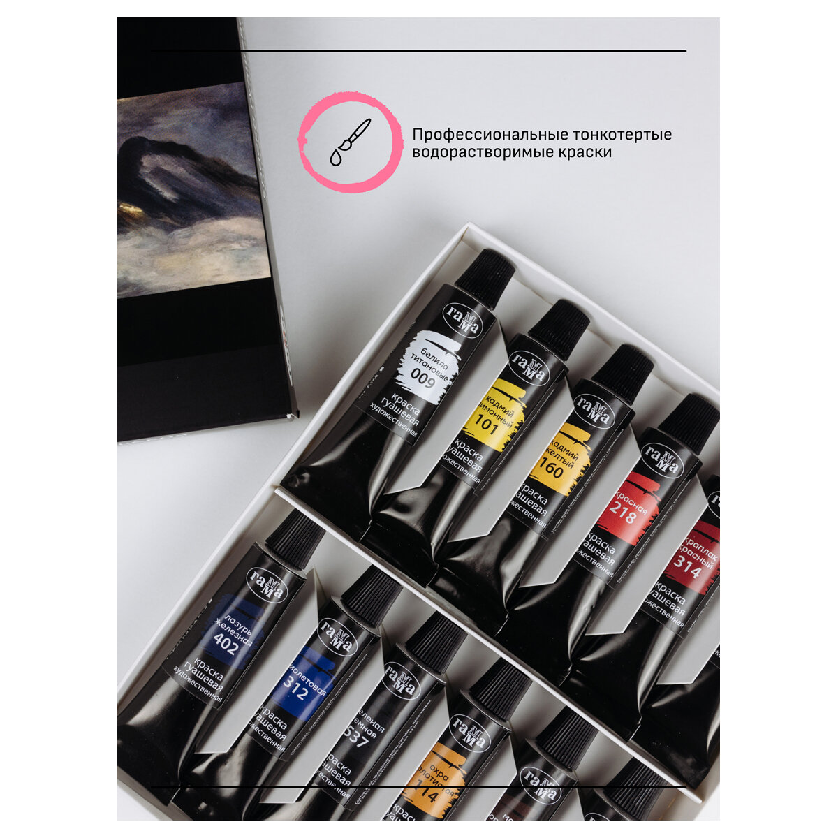 Гуашь художественная Гамма "Старый мастер" краски для рисования в тубах 12 цветов в наборе, без кисти, в картонной упаковке 808 ₽