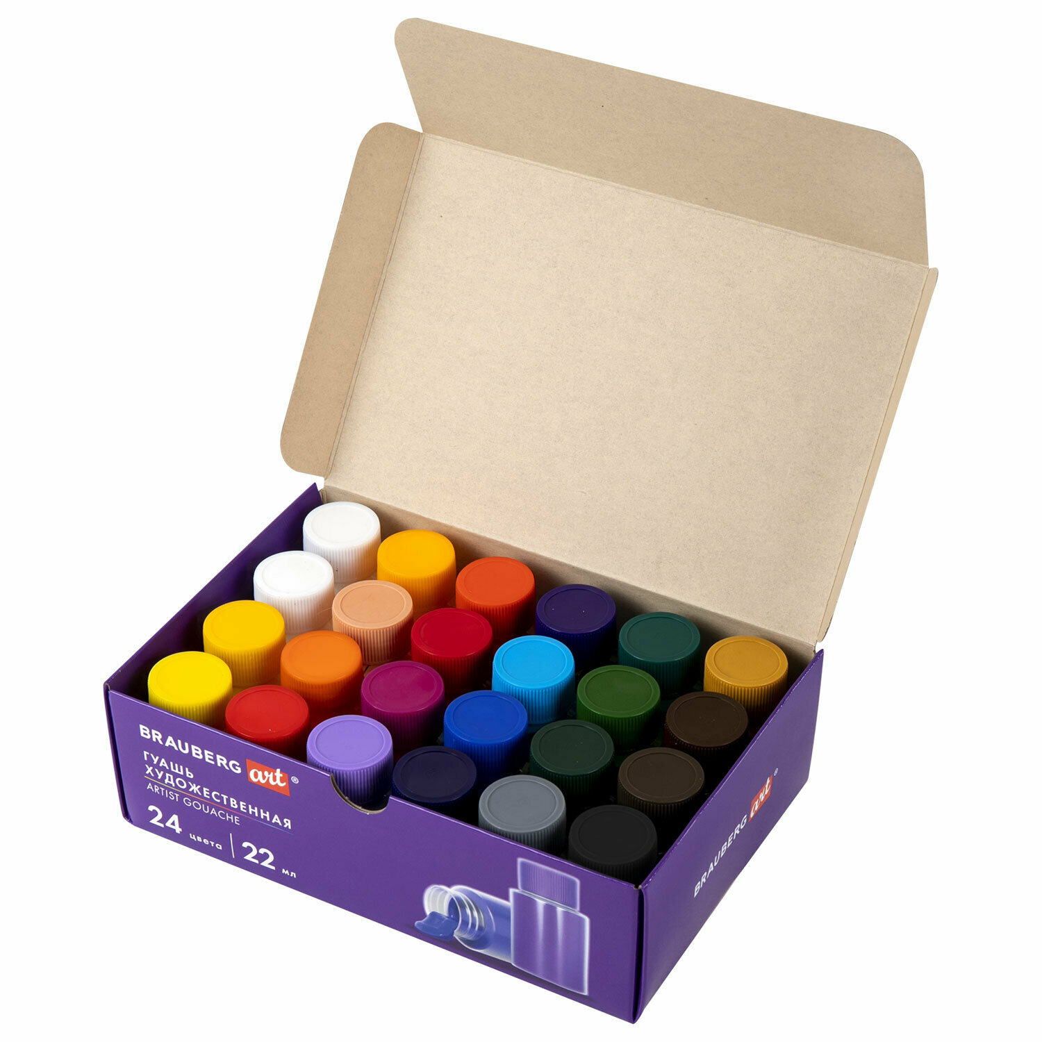 Гуашь для рисования художественная Набор 24 цвета по 22 мл, с гуммиарабиком, Brauberg Art Debut 192355 информация: