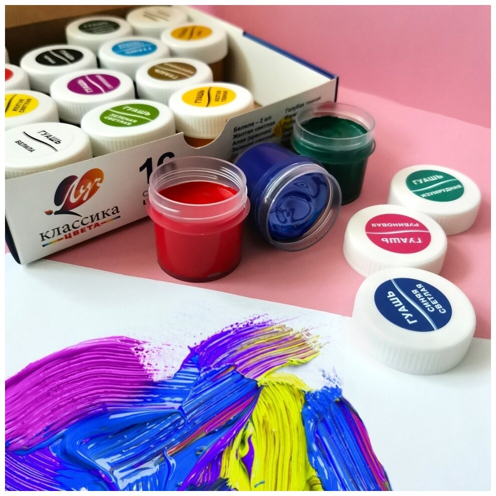 10 цен на Гуашь "Классика" 16 цветов