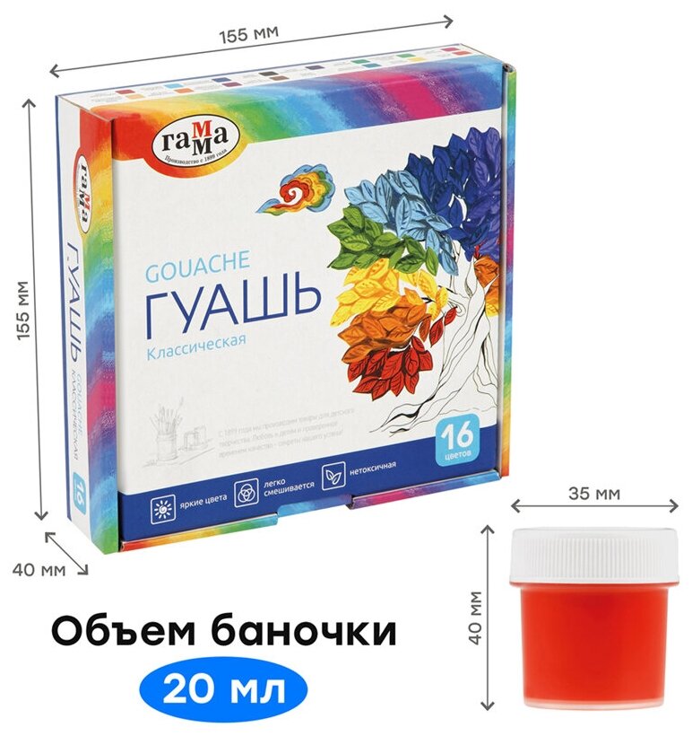 | Комплектация | Гуашь Гамма "Классическая" 16 цветов |