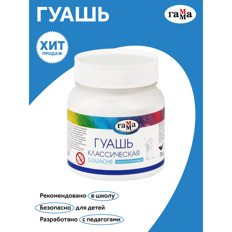 Гуашь для школы белая (белила титановые) / Краски для рисования детские Гамма "Классическая" в баночке / Набор красок для творчества и хобби детей 455 ₽