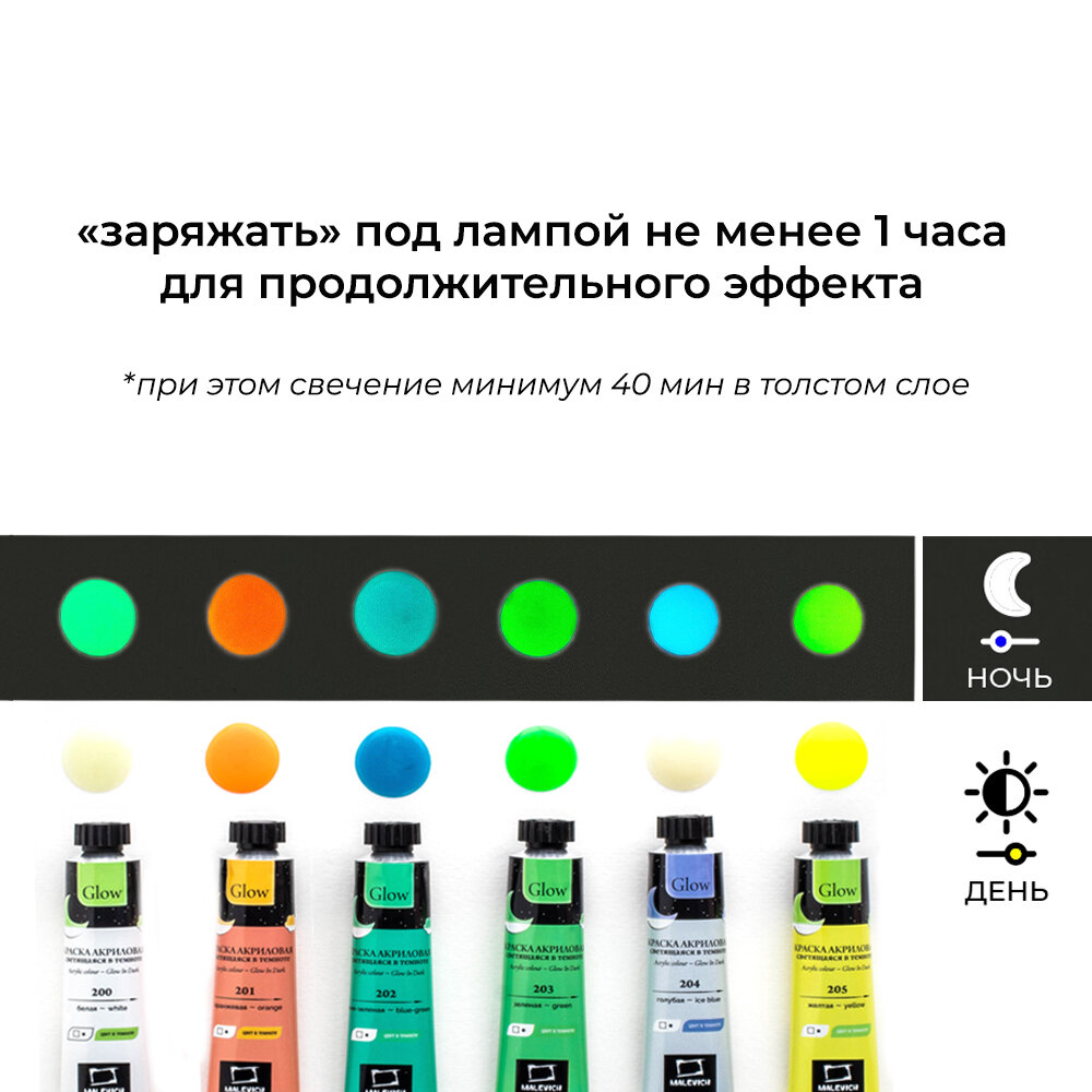Набор акриловых красок Малевичъ Glow светящаяся в темноте, 6 цветов по 20 мл информация: