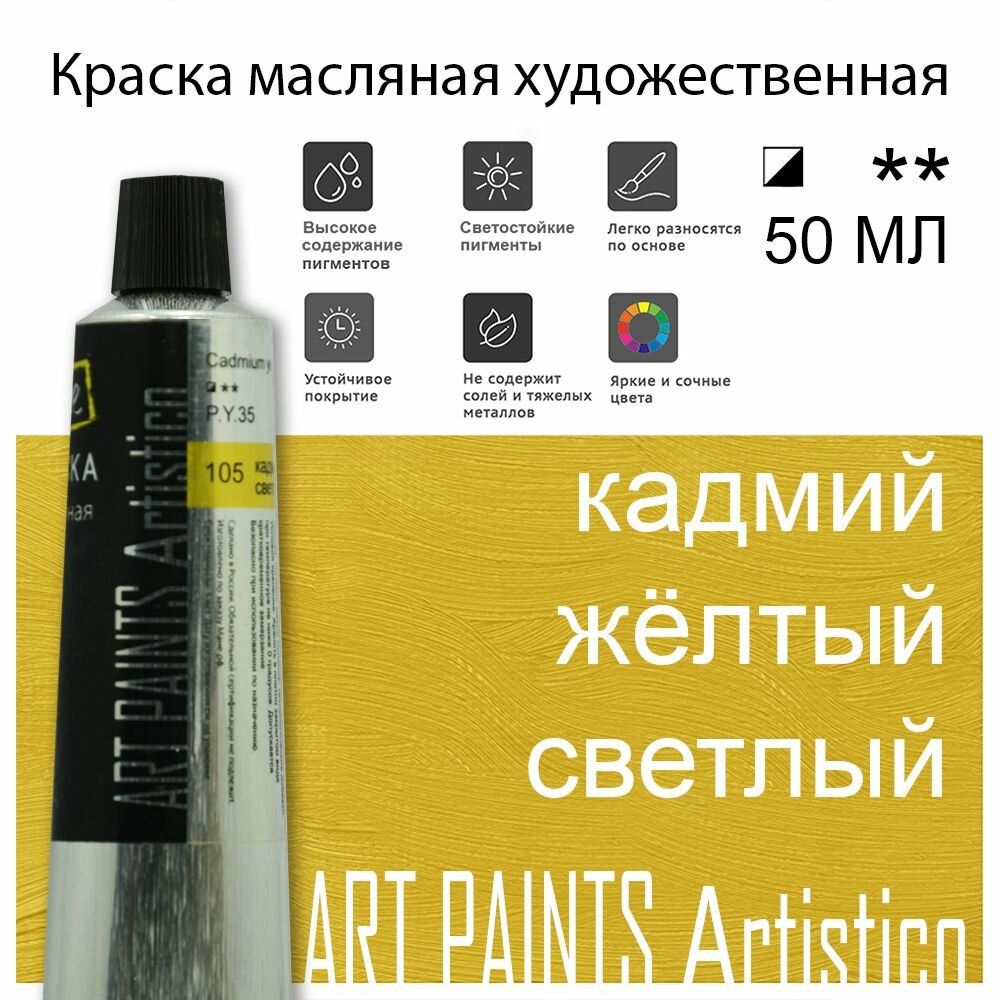 Краска масляная ART PAINTS Artistico 105 кадмий жёлтый светлый, 50 мл информация: