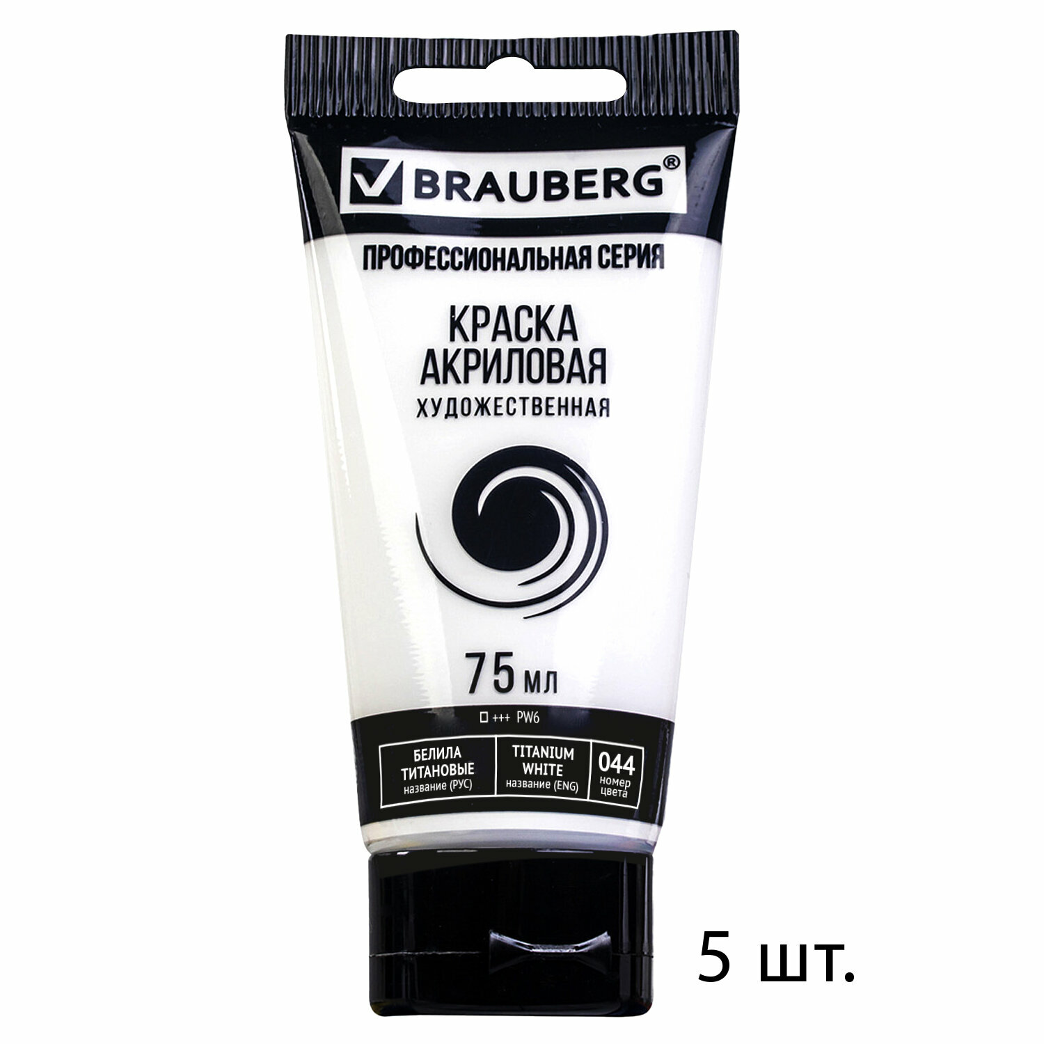 Акриловые краски художественные белые, белила глянцевые акрил набор 5шт для рисования по холсту, дереву 75мл в тюбиках, Brauberg Art Classic, 192423 информация: