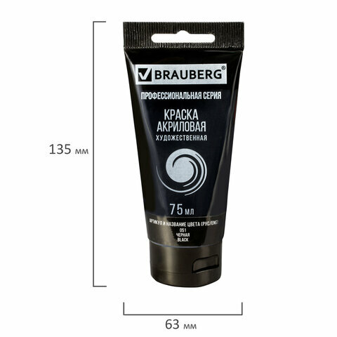 Краска акриловая художественная туба 75 мл BRAUBERG "Чёрная"