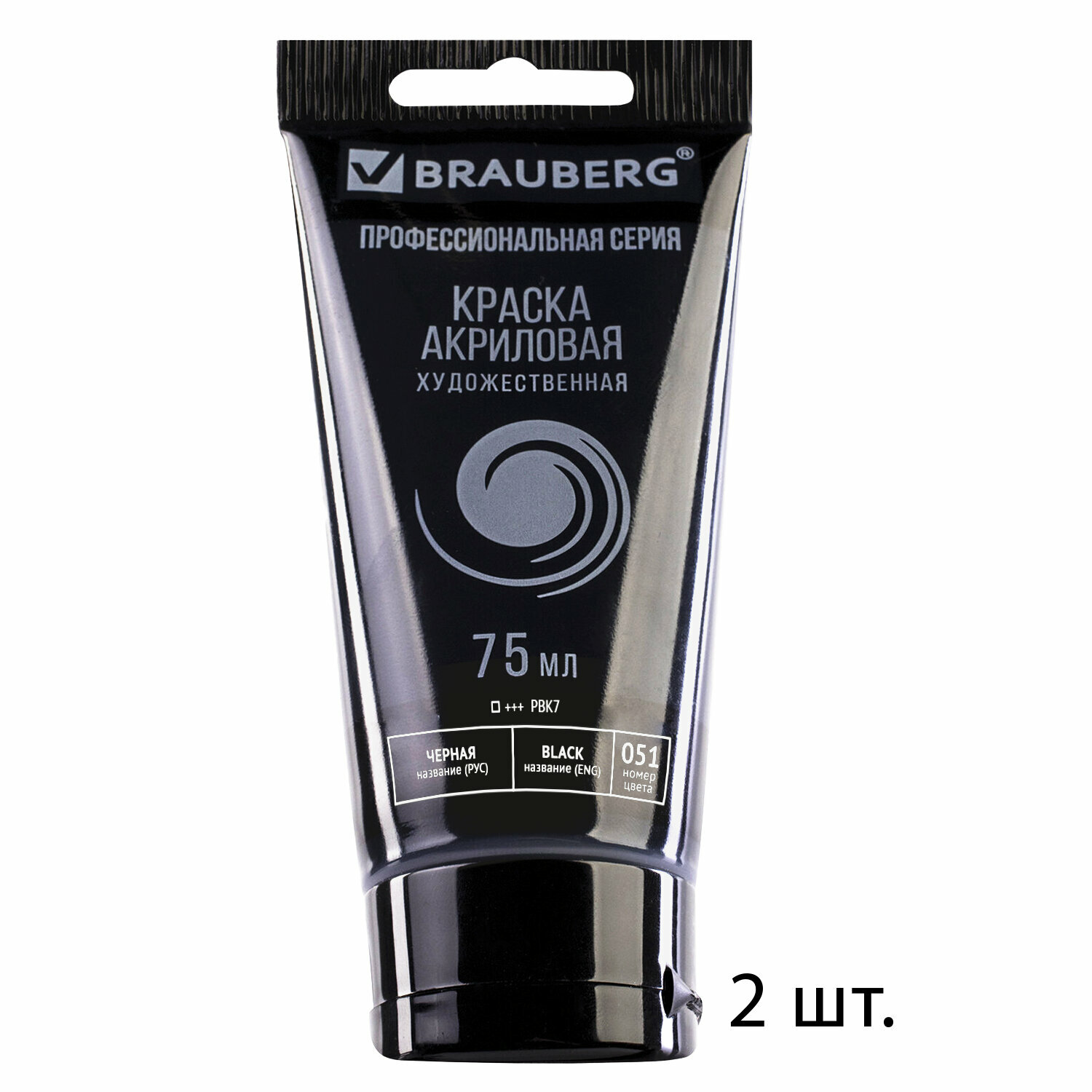 Акриловые краски художественные черные глянцевые акрил набор 2 штуки для рисования по холсту, дереву по 75 мл в тюбиках, Brauberg Art Classic, 192422 информация: