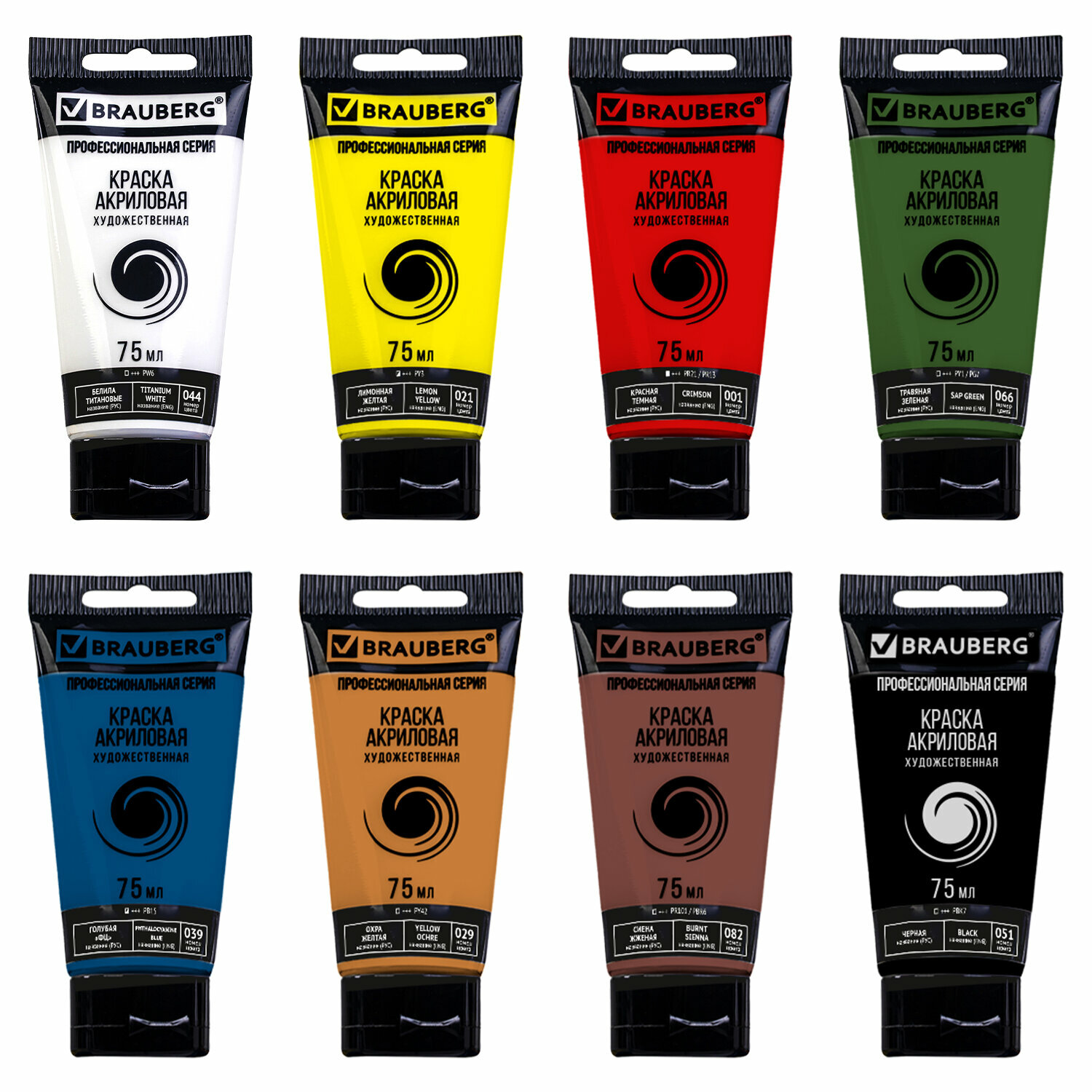 Отзывы на Акриловые краски художественные глянцевые акрил набор 8 цветов для рисования по холсту, дереву по 75 мл в тюбиках, Brauberg Art Classic, 192425