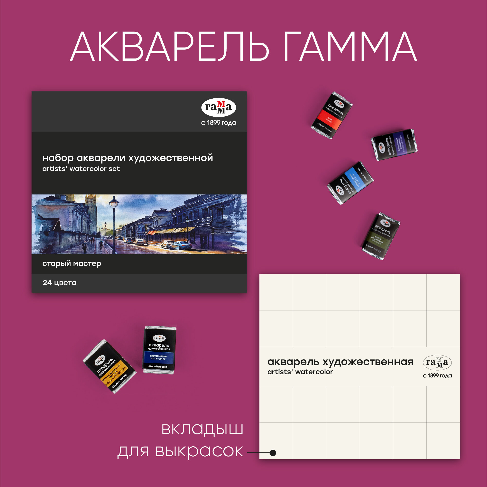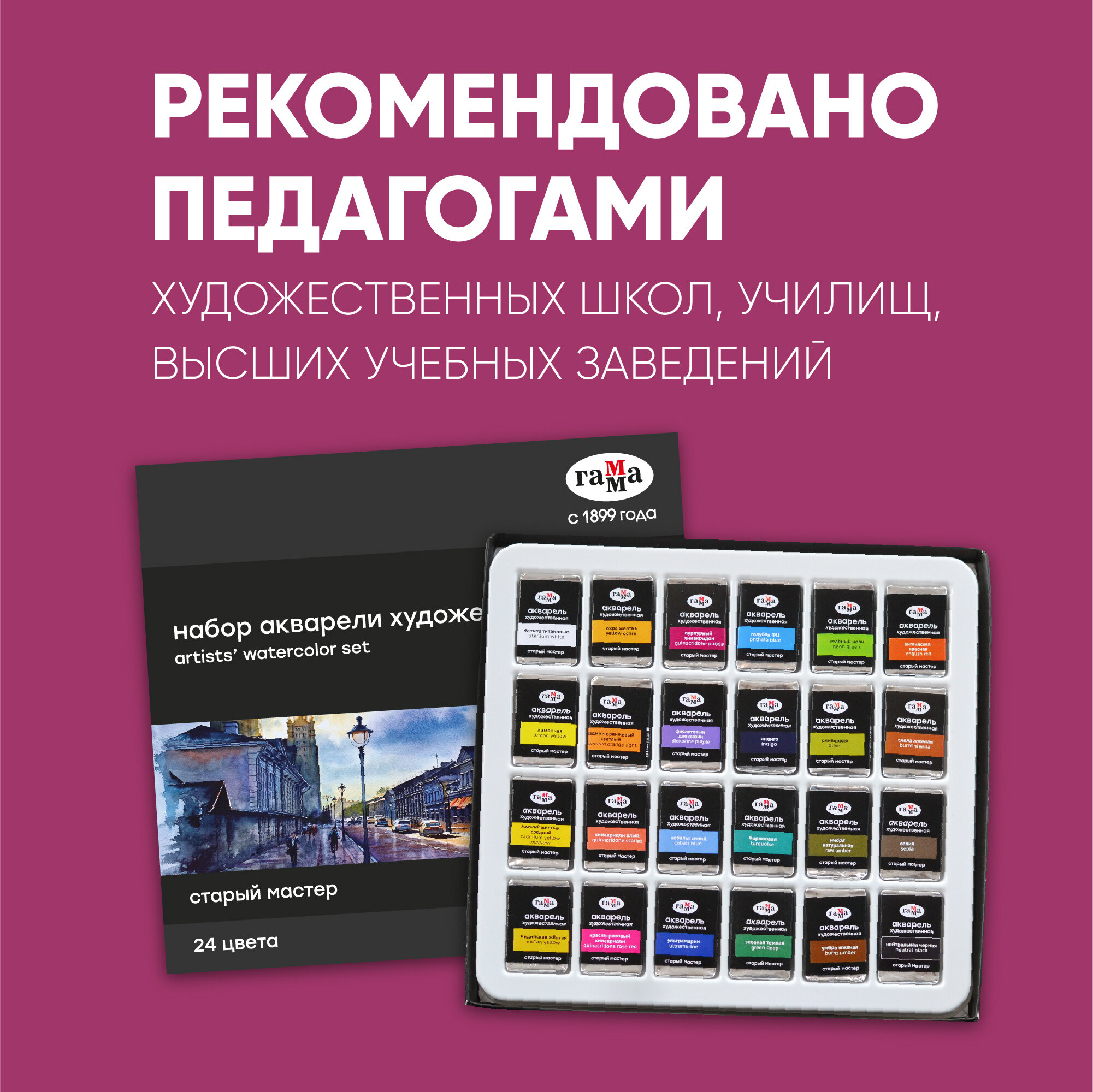 Акварель художественная Гамма "Старый Мастер", 24 цветах2,6 мл, кюветы, картон (150620211) информация: