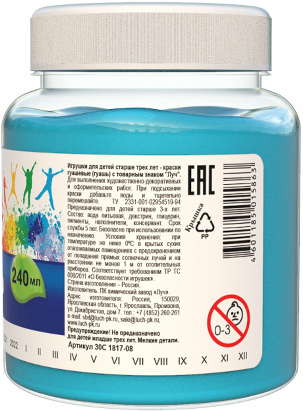 Гуашь "Луч" Классика цвета, 240 мл, белила титановые