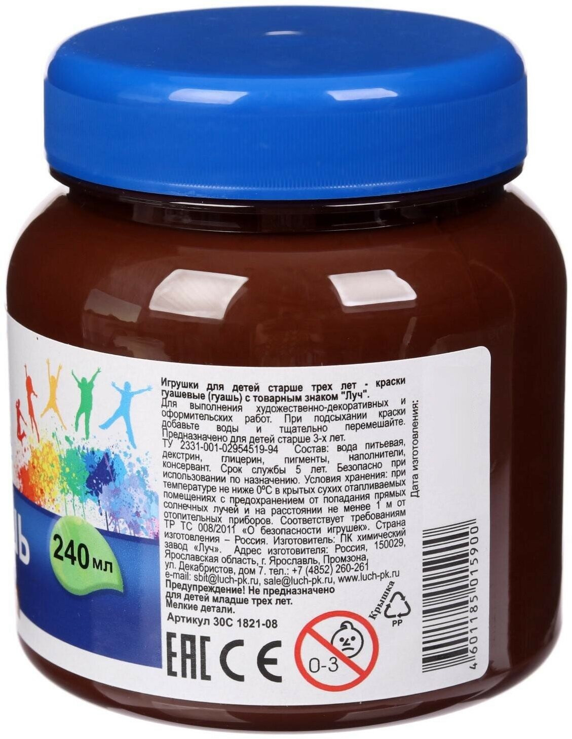 Гуашь "Луч" Классика цвета, 240 мл, коричневая информация: