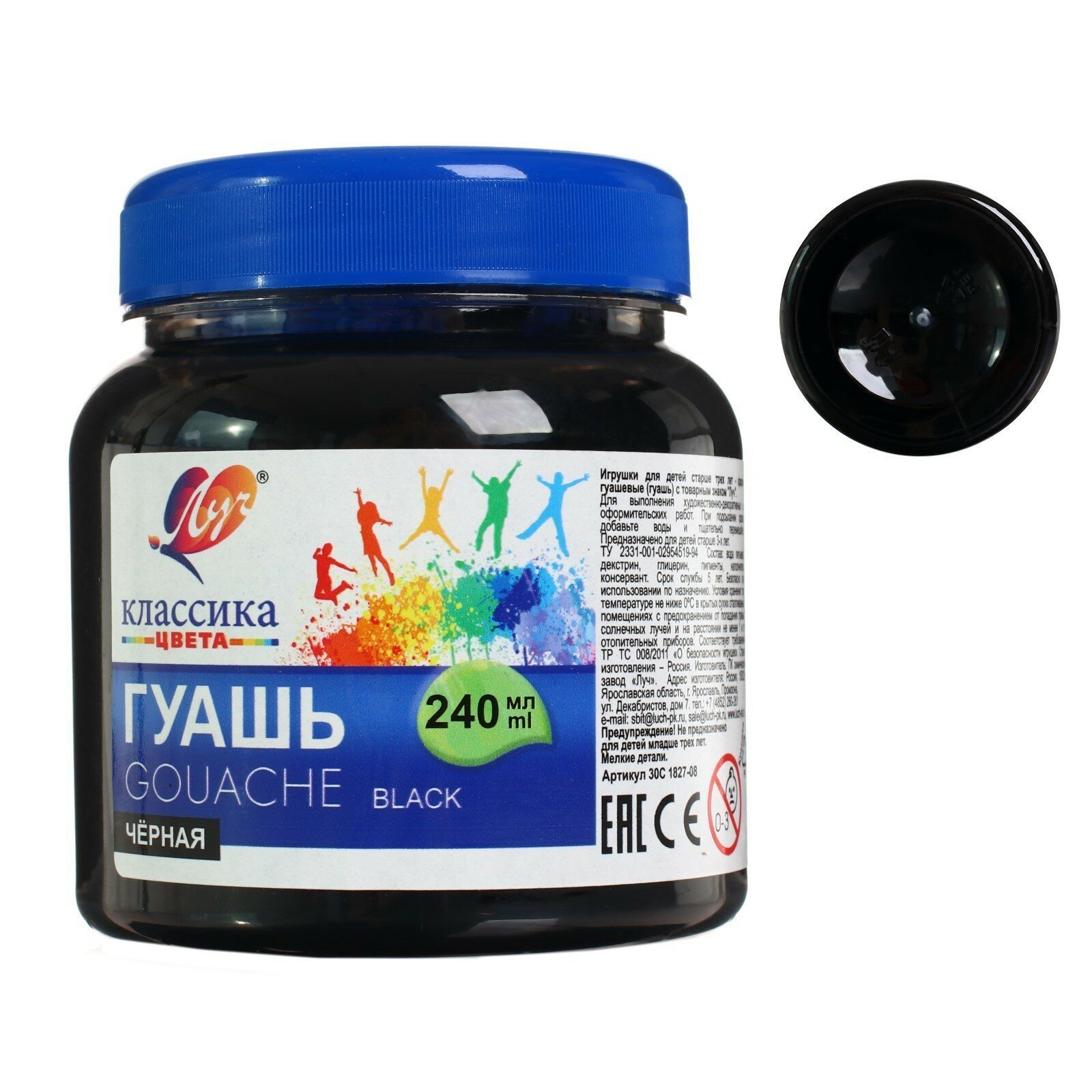 Гуашь художественная 1 шт. ЛУЧ "Классика", 240 мл, черная, 30С 1827-08