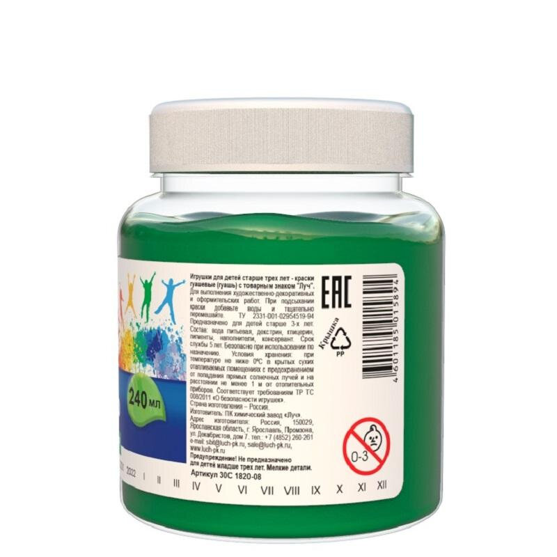 Гуашь Луч художественная 1 шт. "Классика", 240 мл, зеленая темная, 30С 1820-08