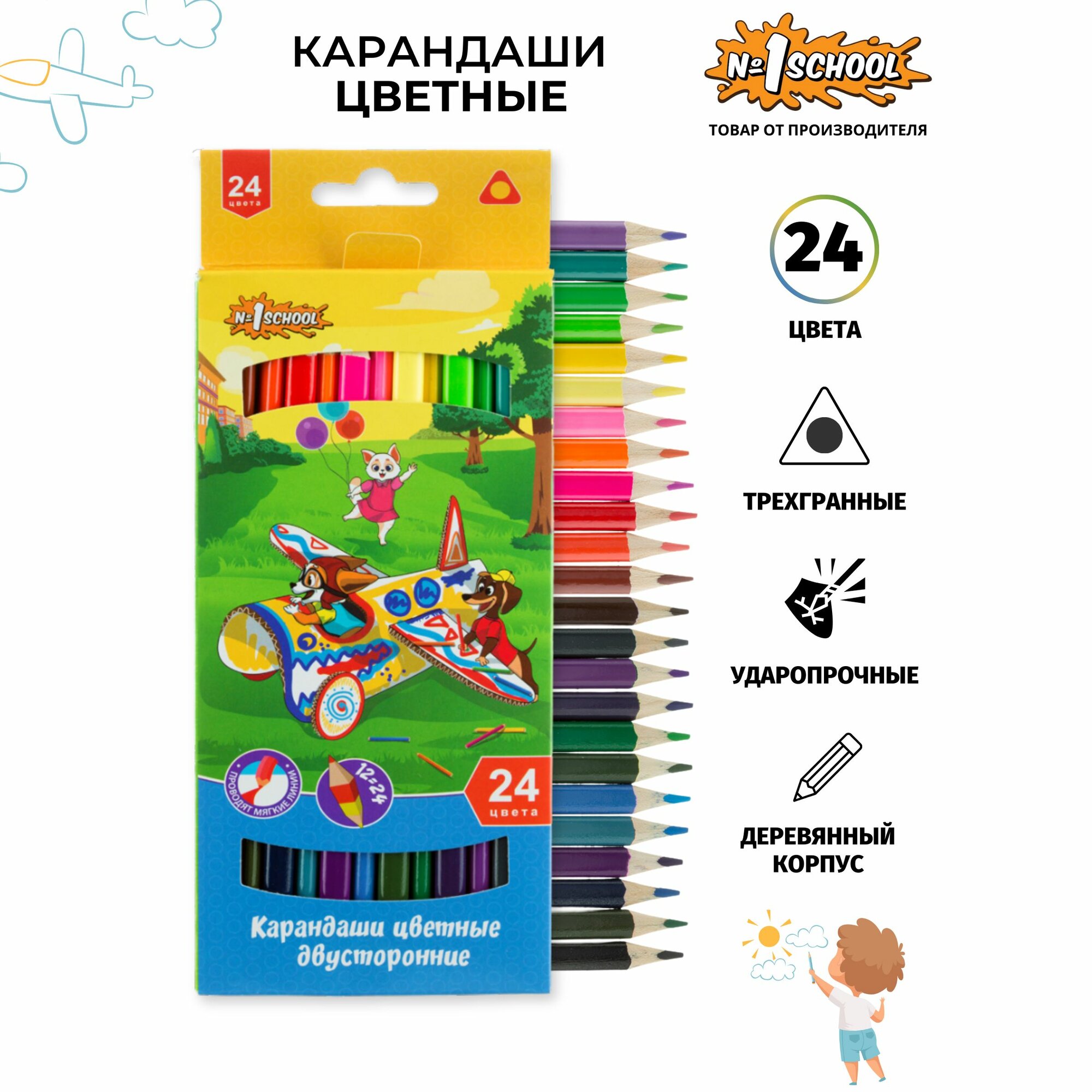10 цен на Карандаши цветные №1 School, трехгранные, толщина грифеля 2,8 мм, набор 24 цвета